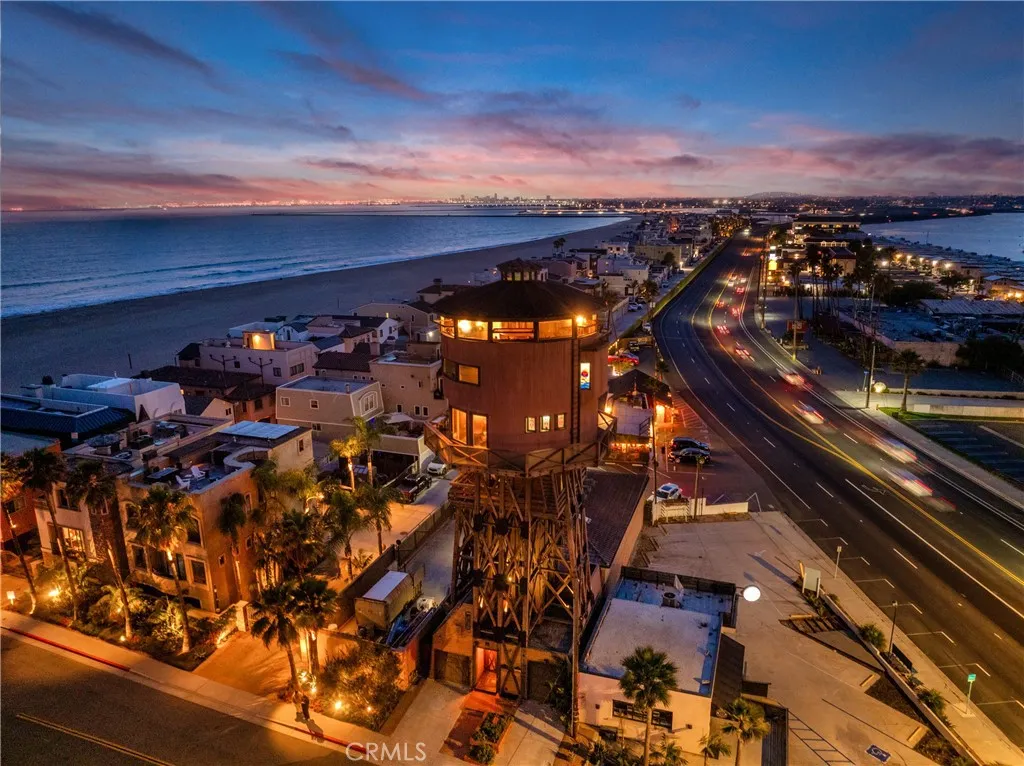 Dreaming of living within a piece of coastal history with stunning ocean views? Rising above the community of Surfside, the legendary Water Tower House is not just a home - it's a one-of-a-kind experience! Originally constructed in the late 1800s to hold water for passing steam engines, this historic landmark was transformed into a fully functional residence in 1985, and now offers over 2800 sq ft with four bedrooms & four baths for a truly unforgettable lifestyle. From the moment you enter the base of the tower, step into a story that connects today to yesteryear. The foyer welcomes you with a cascading water feature and a wall of vintage tools unearthed during the 1940s - a tribute to the structure's enduring legacy. A ground-floor guestroom with a secret nook is a playful retreat for overnight visitors. The elevator whisks you up to the main living quarters, the 3rd level of the tower is rich with character - whether you're preparing a meal in the well-appointed kitchen with modern appliances or enjoying coffee in the dining area surrounded by dramatic angles and coastal lore. One of the bedchambers is here, creatively themed after the only known pirate to haunt these shores, adding an imaginative twist to the home's personality. The wrap-around deck invites you to sip cocktails while watching the waves or catching the sunset from any angle. Venture upward and you'll find two exceptional ensuite bedrooms - each a retreat in its own right with unique panoramic scenes via hinged windows. At the pinnacle of the abode, 5th level, sits the Rotunda, a spectacular open-concept area, built within a lofty octagon of redwood beams and glass where sunlight pours through expansive picture windows with 360-degree views that stretch from Catalina to the mountains.. A stained-glass cupola crowns the heights of the ceiling while a compass rose marks the hardwood floor beneath your feet. A circular staircase, adorned with ironwork and fine wood detailing, connects the elevated levels. Throughout the dwelling, you'll find surprises - from a whimsical model train weaving through the rafters, to bespoke shelving, artistic glasswork displays, and a spectacular sunset deck. Add a laundry room, and garage parking to the ever-growing list of perks accompanying life here. Located just off PCH, you're only moments from iconic neighborhood spots like Woody's Diner, Captain Jacks, Sunset Beach, and Huntington Harbor. Come experience being above it all in the world-famous Water Tower House!
