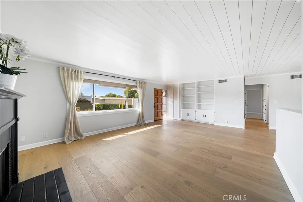 Welcome Home to this beautifully remodeled mid-century modern 2 Bed, 2 Bath home in the highly sought-after coastal 55+ community of Bay Cliff Village. Quietly perched atop the hillside, this home boasts a desirable single-level, open floor plan with large windows that welcome an abundance of natural light. Upon entry, you will be greeted by the sunlit white oak flooring, which seamlessly blends the large, open living room with the dining area. The living room is anchored by a quintessential mid-century modern brick fireplace. In keeping with the 1962 heritage, you will find charm, organic and geometric shapes, and a diverse range of materials used throughout the home. The chef's galley style kitchen fully embodies actual mid century modern design with custom maple cabinetry, quartz counters, a full tile backsplash, slate hexagon tile floor, Cafe Series appliances all pulled together by the unique charm of a authentic copper oversized sink resting beneath a large window with views for miles. The guest bath feature marble hexagon tile, a new vanity, and a penny tile walk-in shower. The large primary suite boasts plenty of natural sunlight. Your en-suite bathroom has been elegantly remodeled to match the guest bath. The second bedroom has its own private sliding door, joining it to a large sunroom. Use as a serene retreat, home office, or even an art studio. Fully enclosed by floor-to-ceiling windows with a second sliding door that leads to the private patio. The large private patio is surrounded by lush, mature landscaping, boasting views of the Shorecliff golf course, the Saddleback Mountains, and, in the evening, city lights. A perfect environment for unwinding or entertaining. Additionally, there is a large, one-car detached garage and a designated parking spot located steps from the front door. Thoughtful upgrades include PEX plumbing, energy-efficient windows, new flooring, and new energy-efficient appliances. Bay Cliff Village is a community featuring picturesque walkways, beautiful gardens, a clubhouse, and several seating areas offering breathtaking panoramic ocean views, all of which contribute to a vibrant community lifestyle. Conveniently located in the center of it all, while still maintaining the integrity of this quiet community. Just a short stroll to the beach, PCH, a few miles to downtown San Clemente, Outlets at San Clemente, and Dana Point Harbor, easy access to the 5 freeway & public transportation.