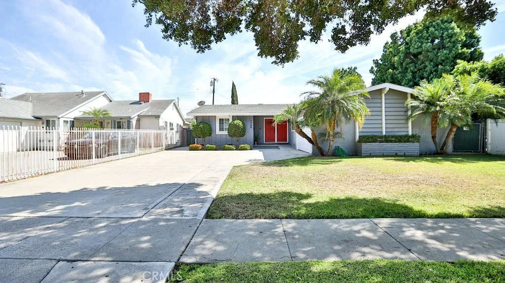 Beautifully maintained since 1989, this Mid-Century Modern home is truly a gem. The original hardwood floors have just been refinished in a natural tone, highlighting its timeless charm. Fresh designer interior paint and smooth ceilings create a bright, updated feel throughout. Both bathrooms have been tastefully remodeled: the hall bath includes a tub with a new glass enclosure, while the bath - conveniently located between the laundry room and an additional bedroom - also features a glass-enclosed shower. The split floor plan provides privacy with two bedrooms and a hall bath on one side, and a third bedroom with its own bath on the other. This home also offers modern upgrades including newer dual-pane windows, a 5-year-old roof, 3 year-old tankless water heater, 3 year-old central air, 3 year-old upgraded insulation, and fresh paint. The spacious private backyard includes two orange trees, mature landscaping, and greens. Washer, dryer, and refrigerator will be gifted by the seller, making this home move-in ready and waiting for you. OFFER NOW BEFORE IT'S GONE!