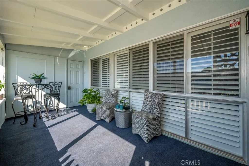 Charming 1-bedroom with unique vibe in prime drive-up location If you're searching for a one-bedroom home with a special charm and easy access, this is the perfect fit. This Southeast-facing unit welcomes you with a full patio, added storage closet, and plenty of natural light. Inside, you'll find cozy carpet flooring and elegant window shutters throughout. The kitchen stands out with updated appliances, modern hardware, and a stylish fandelier that adds both light and flair. The bathroom features a well-maintained shower with a sleek glass enclosure and newer fixtures. Conveniently located just a short walk from the laundry facilities and Clubhouse 2 - ideal for those who enjoy pickleball, bocce ball, or a game of pool! (CARPORT 48, SPACE 3) SENIOR COMMUNITY-OFFERS THE FOLLOWING AMENITIES: 9 Hole Golf Course, Swimming Pool, Jacuzzi, Gym, Table Tennis, Shuffle Board, Billiards, Pickle Ball, and Bocce Ball courts. Amphitheater, 6 Clubhouses featuring: Art Room, Sewing, Crafts, Wood Shops, Lapidary, Pool Tables, Over 200 Clubs, LWSB is a Security-Guard-Gated Community. Also Library, Friends of Library Bookstore, Credit Union, Health Care Center, Pharmacy and Post Office.