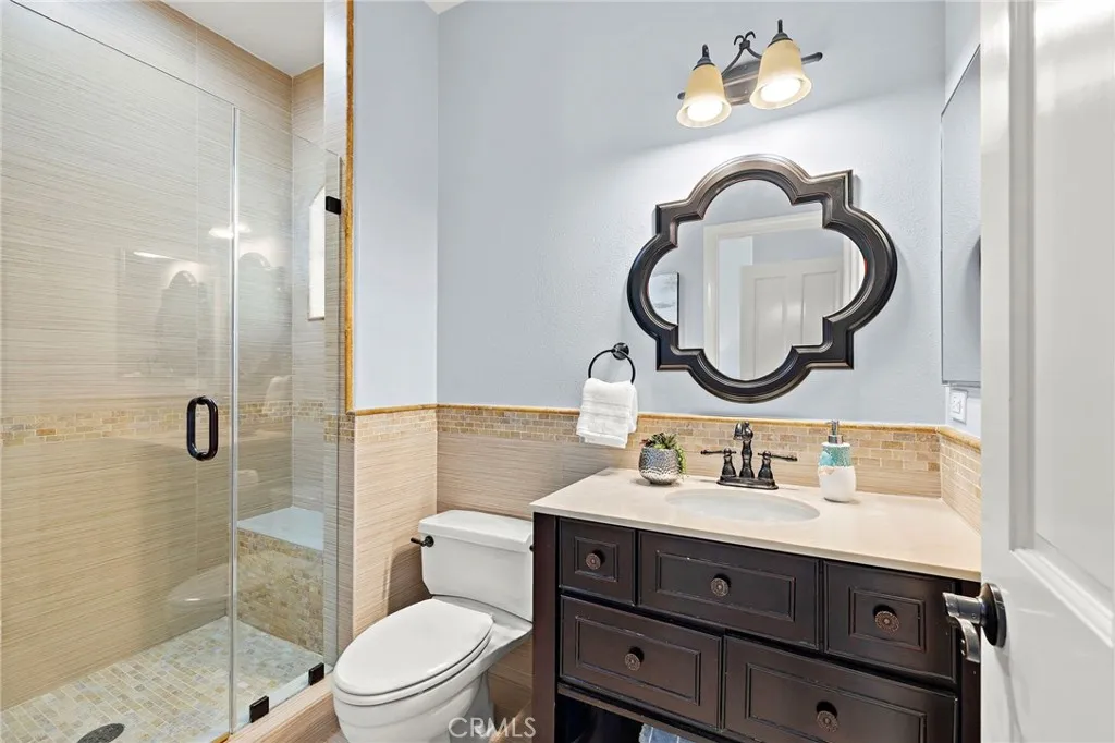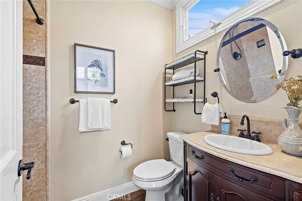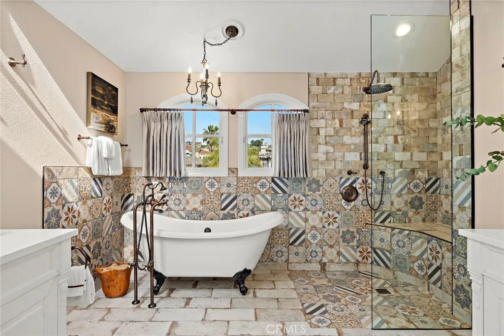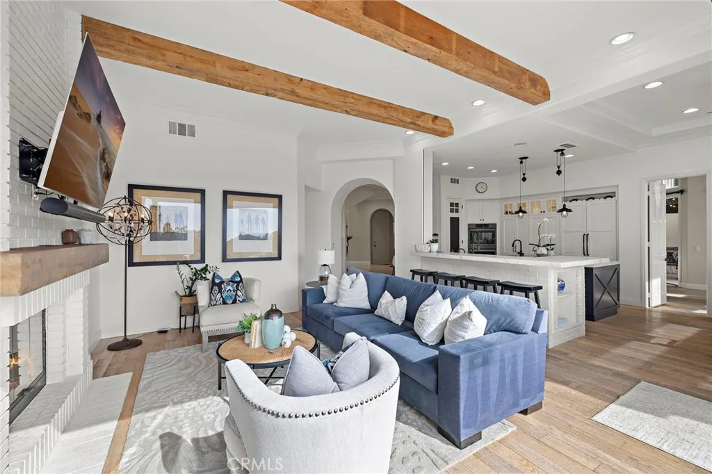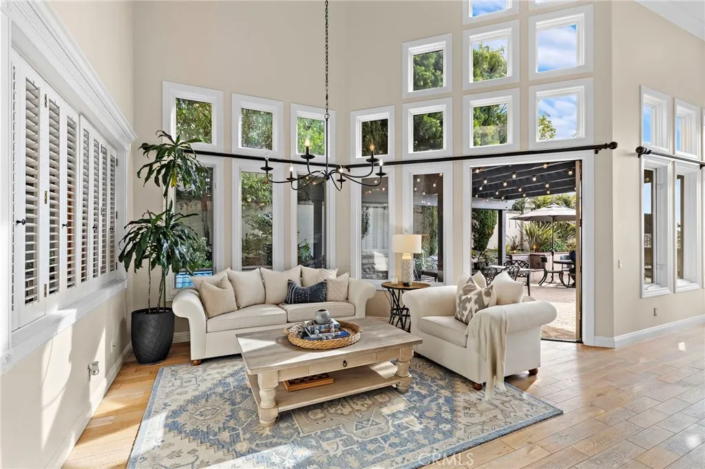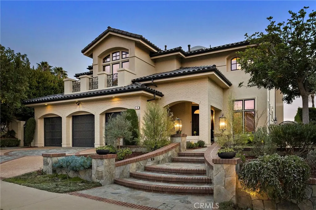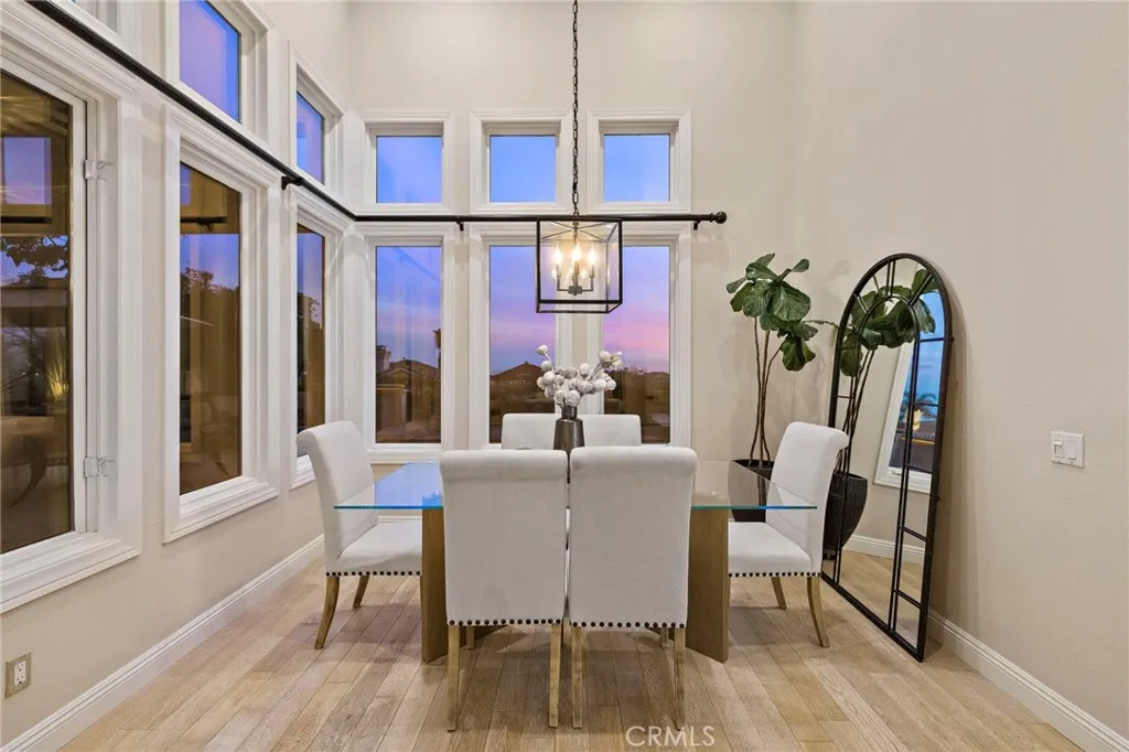 Positioned behind the gates of Ocean Ranch, this coastal residence captures EXPANSIVE OCEAN & SUNSET VIEWS (photos do not do justice) from Both First and Second Floors. Stone flooring introduces the entry, transitioning to vintage oak floors that continue throughout both levels of the home. The kitchen features custom cabinetry, Mont Blanc leathered quartzite countertops, reclaimed wood shelving, and a generous island. High-end appliances include double Bosch dishwashers, Bosch double ovens, a Dacor induction cooktop and refrigerator, wine storage, and a walk-in pantry. The kitchen opens to both the family room and a large adjacent breakfast nook, featuring an expansive picture window with glass-to-glass panel connections that frame the ocean view. The family room is anchored by a fireplace, reclaimed ceiling wood beams, and LaCantina bifold doors, creating an indoor-outdoor connection. The main level also includes a guest bedroom with en-suite bath, built-out library or home office, formal living and dining rooms, a powder bath with Venetian plaster, and a well-equipped laundry room with utility sink and laundry chute. Upstairs, the primary suite enjoys elevated ocean and San Clemente Island views and shares a double-sided fireplace with an adjacent office or retreat. The office/retreat features French doors that open to a sizable deck with spectacular ocean views. The primary bath includes a soaking tub, walk-in shower, imported Italian tile, dual vanities, and 2-spacious walk-in closets with custom organizers. Two additional guest bedrooms each offer en-suite baths. The backyard is designed for both entertaining and everyday enjoyment, with a saltwater pool and spa, waterfall feature, fire pit, built-in BBQ, separate bar, outdoor shower, and an inviting pergola with integrated lighting. Mature landscaping and ocean breezes complete the setting. Additional features include paid for solar panels, epoxy-coated plumbing, a low-water irrigation system. Ideally located near the harbor, beaches, and award-winning schools.