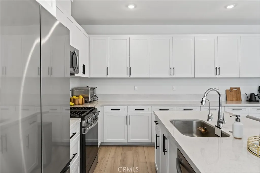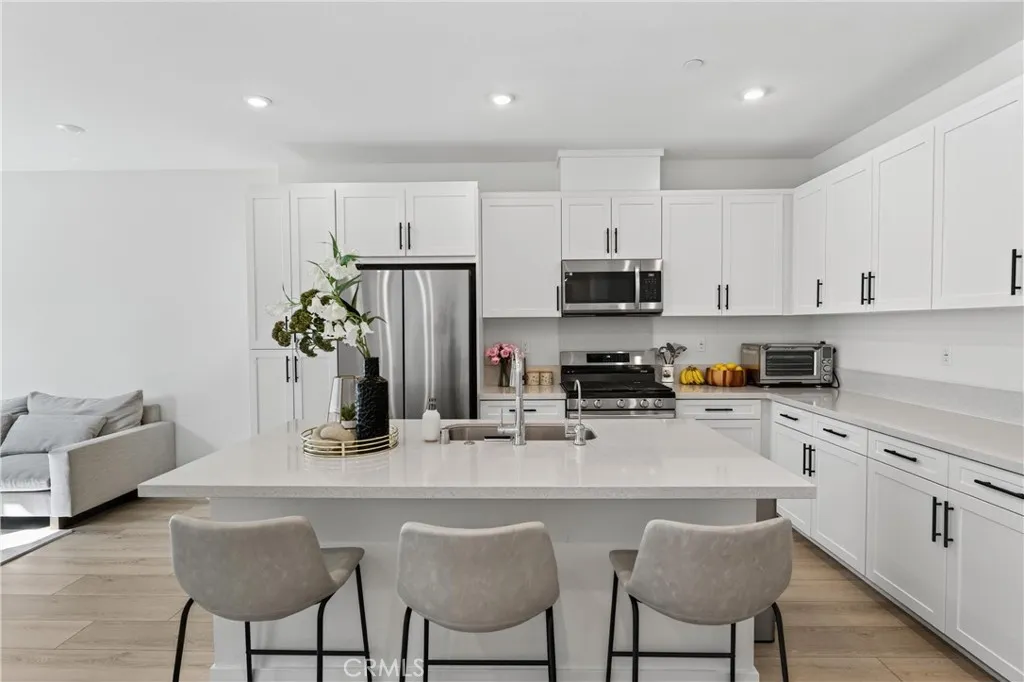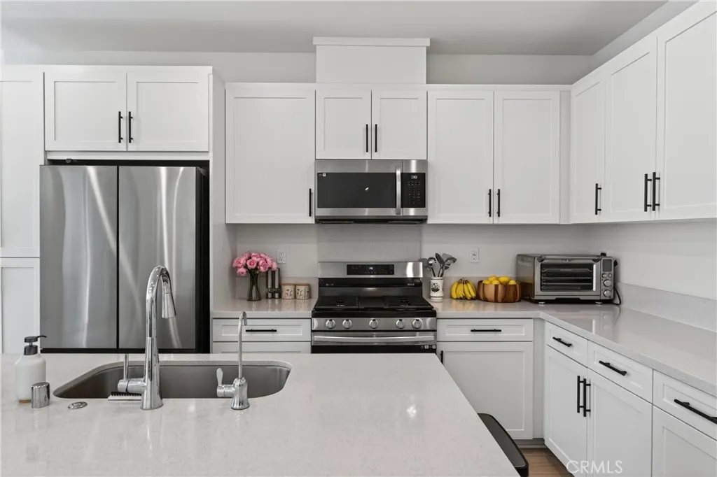 Turn-key, ready to move in. THIS HOME QUALIFIES FOR A $30,000 GRANT! Can be used towards down payment, closing costs, or lower APR. Welcome to this PAID OFF solar powered home (save on energy), with 2 EN-SUITE bedrooms, 2.5 baths, 1320 sq ft of open living space in a secure GATED COMMUNITY with NO MELLO ROOS. Comes with a DIRECT ACCESS, OVERSIZED 2 car garage, EV charging outlet, and in-unit washer/dryer. This model comes with more storage than other models and has window coverings installed, upgraded luxury vinyl flooring THROUGHOUT, quartz countertop, 5 burner GAS stove, and shaker cabinets. ZERO CARPET. The community has a low HOA, guest parking and amenities to enjoy. Amenities include security gates, fire pit lounge, outdoor bbq, half basketball court, playground, and dog park. Sellers will purchase a year HOME WARRANTY for the buyers.