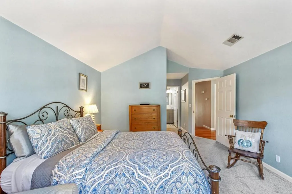 This upper-level 2-bedroom, 2-bath home offers approximately 1,115 sq. ft. of well-designed living space in a quiet, well-maintained community. Vaulted ceilings and abundant natural light create an open, inviting environment, while the private patio is the ideal setting for your morning coffee or end-of-day reset. The kitchen offers a breakfast bar, stainless steel appliances and plenty of counter space. The living room has a wood burning fireplace for cozy evenings at home. The primary bedroom has a large walk-in closet and a private updated ensuite bathroom with a walk-in shower. The layout provides functional separation of space, supporting everyday livability. Enjoy Coastside living close to beaches, the Coastal Trail, and downtown Half Moon Bays shops and restaurants.