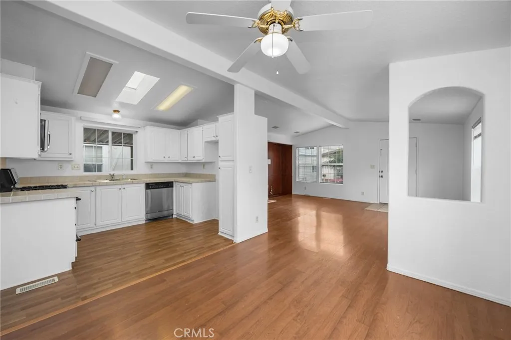 Move-in ready and just in time for the New Year! This beautiful 2003 manufactured home offers 3 spacious bedrooms and 2 full bathrooms, ideal for comfortable everyday living. The home features fresh interior and exterior paint, a bright and open living room with a decorative fireplace, and generously sized bedrooms. Enjoy a separate dining area and a well-appointed kitchen with newly repainted cabinetry, abundant storage, and a skylight that fills the space with natural light. The kitchen comes equipped with a stove, microwave and dishwasher for added convenience. Additional highlights include an indoor laundry room, a separate outdoor storage shed, and a long driveway with parking for up to three vehicles. The front porch provides the perfect spot to relax and enjoy sunny afternoons. Interior features include laminate and linoleum flooring, ceiling fans, and central air conditioning and heating for year-round comfort. The community offers excellent amenities, including a beautiful clubhouse with a private gym, a heated swimming pool, and a Jacuzzi. Located in the prestigious ABC Unified School District and within walking distance to Cerritos Mall, shopping, and transportation. A must-see home - schedule your private showing today!