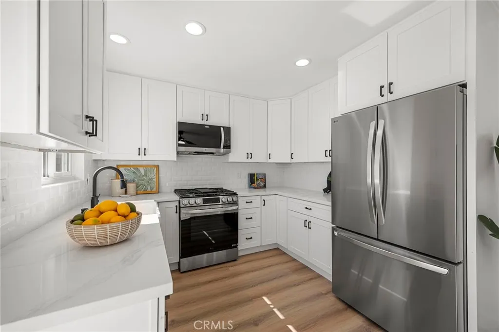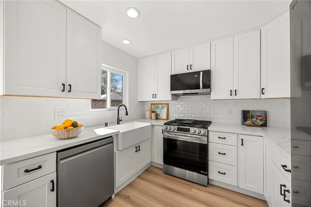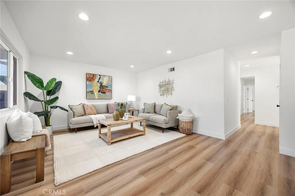 Beautifully and thoughtfully remodeled home in a great neighborhood in El Monte is now ready for its new owners. Located on a nice cul-de-sac you'll find this fresh feeling 4 bedroom, 2 bathroom home. As you step through the front door, you'll notice the bright, open, and airy living room with an abundance of natural light. The brand new chef's kitchen has been updated with modern white shaker cabinets, beautiful quartz counter tops, and all new stainless steel LG appliances. The bathrooms have been revamped with modern fixtures and amenities. All of the bedrooms are good size with ample closet space. The primary bedroom has its own ensuite bathroom. Some of the other features of the home include all new waterproof luxury vinyl flooring, new dual pane windows, all new lighting fixtures, ceiling fans, and a new 200 AMP electrical panel. There is a central air and heat system with all new ducting and a Nest thermostat. Attached to the home 2 car garage with direct access to the house. The front and back yards have new grass, mulch and plants with a new sprinkler system. Perfect for family life or entertaining this home is located in a prime location near great shopping, schools, restaurants, public transportation and quick access to the freeways. There is just too much to mention, you have to see it for yourself! Come take a look before its too late!