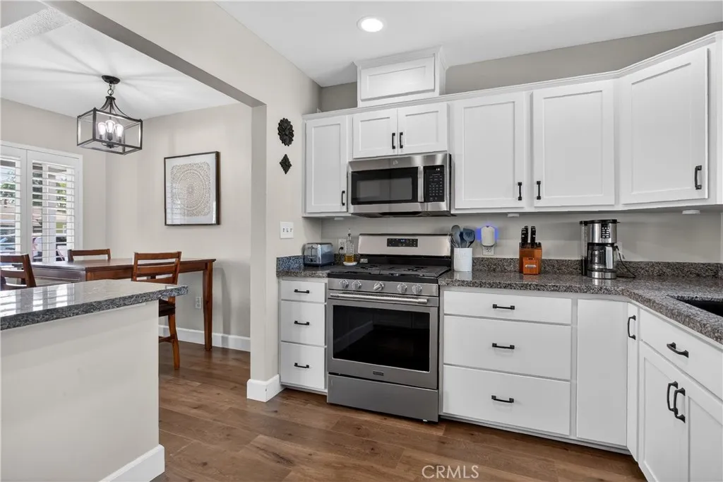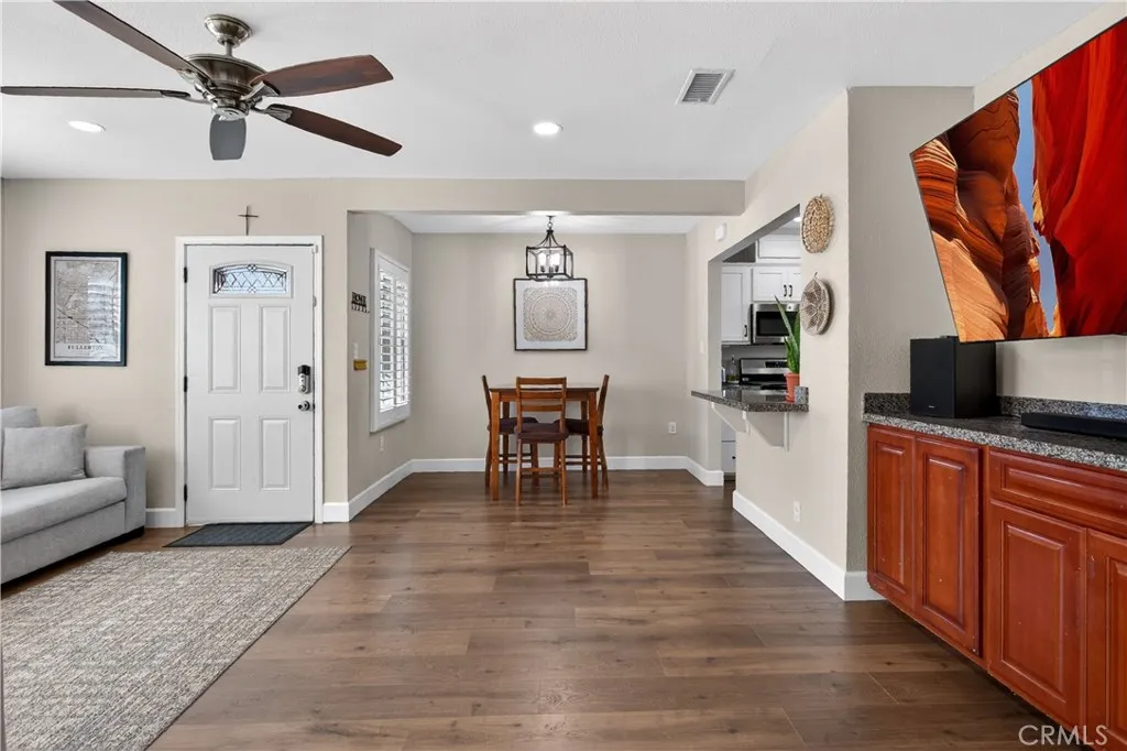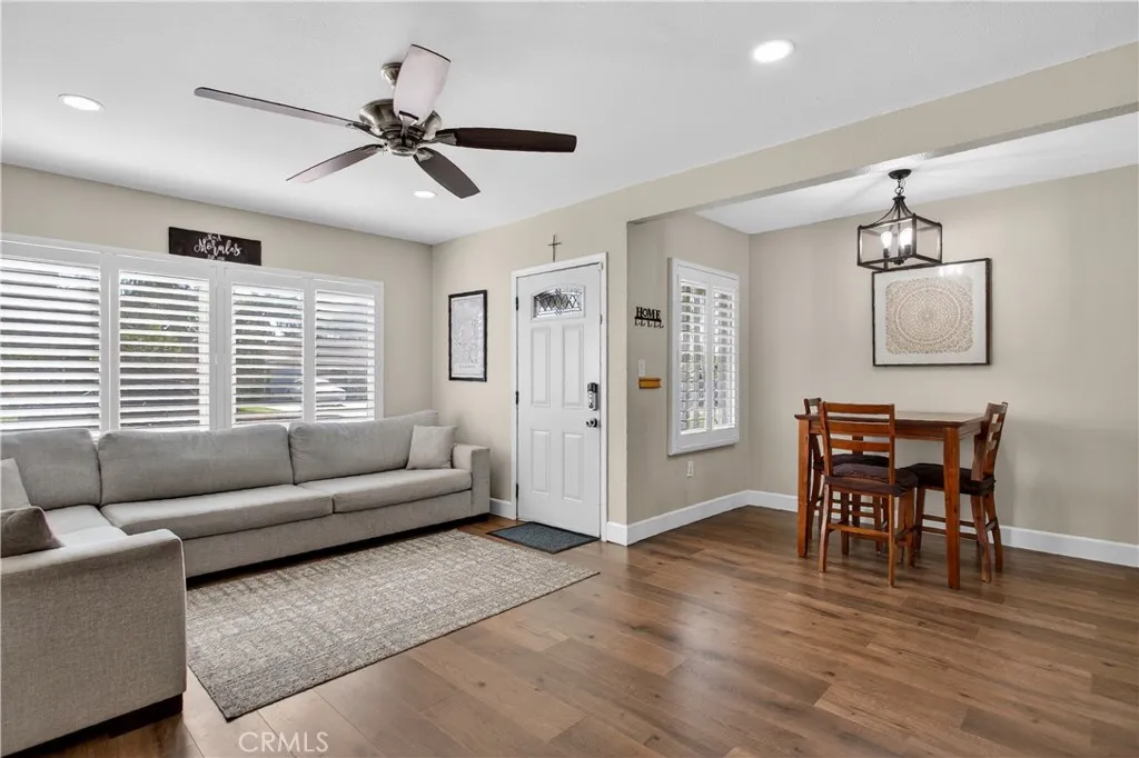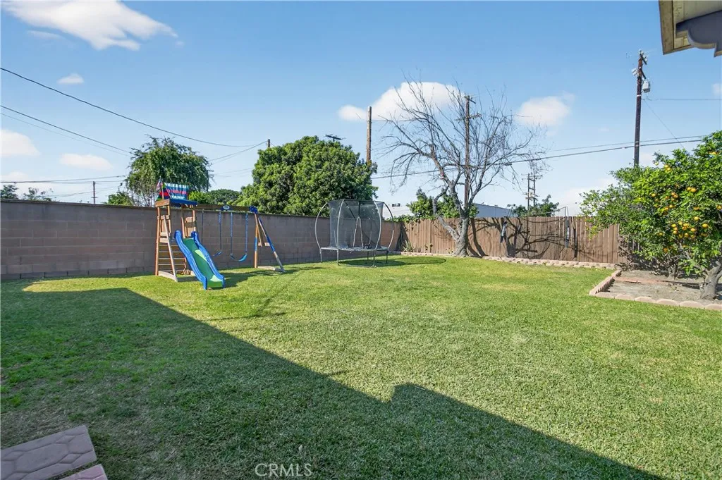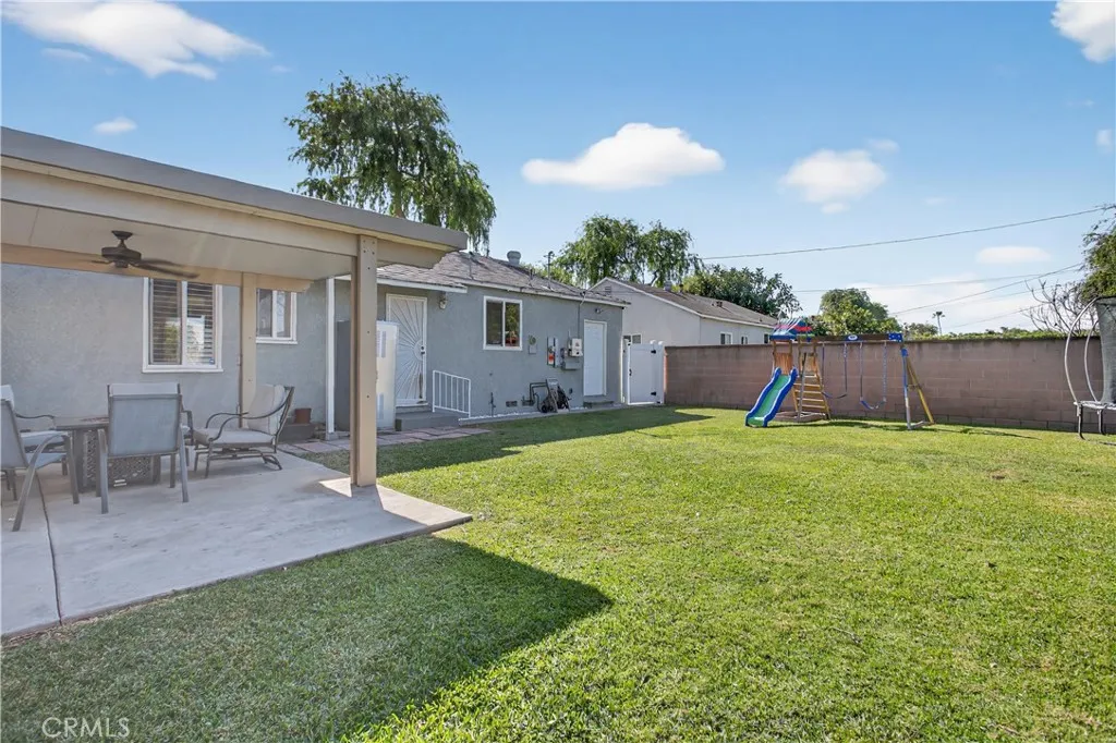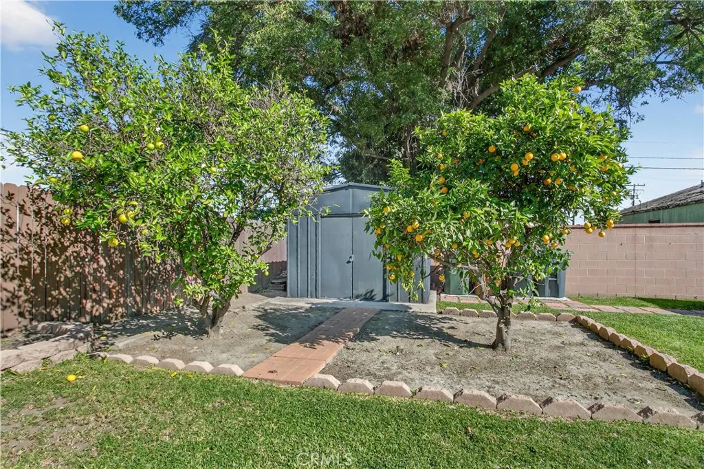 Turn-key Home Sweet Home! This charming, recently modernized single-family home offers upgrades throughout and fantastic curb appeal with true pride of ownership. Features include Tex-Cote Coolwall exterior paint, central A/C & heat, recessed lighting, granite countertops, ceiling fans, hardwood floors, mirrored closet doors, and a beautifully remodeled bathroom. Home also offers interior wood plantation shutters, newly refinished white kitchen cabinetry, and Solar Panels. Equipped with a Fidelis water filtration system throughout entire home. The open-concept layout feels bright and airy with tranquil gray tones, white trim, and wood window coverings. The spacious primary bedroom fits a Cal-King, while the second bedroom is perfect for kids or guests. Enjoy an enormous, updated backyard with room for a pool, room addition, and or ADU. Entertaining-ready with a concrete patio, Alumiwood covered patio with recessed lighting and fan, kids' playhouse, shed, orange and lemon trees, and plenty of grass for play and gatherings. A must-see starter home, lovingly updated and ready for its next residents to move right in!