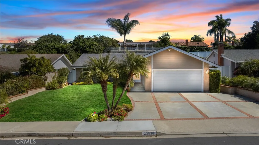 Great single story home located on a quiet street, with a well-designed floor plan in the El Dorado community of Mission Viejo! The Alondra model is open and bright with three bedrooms, two bathrooms, direct access two car garage and a full driveway. As you enter, you will find a spacious living room with vaulted ceilings, wood floors, an inviting fireplace, plenty of natural light and French doors that give way to the lovely patio and backyard. Peaceful and private, the backyard displays an expansive yard with green grass, flowering plants, low maintenance foliage and patio area, all contributing to a great outdoor space with room to lounge, entertain or dine al fresco, while appreciating the tranquil surroundings. The kitchen, with newer stainless appliances and lots of cabinet and pantry space, is open to the dining and family areas and has a nice view of the backyard. The primary bedroom is nicely sized with vaulted ceilings, neutral finishes, walk-in closet and a beautifully remodeled, en suite bathroom with spa-inspired white vanity, luxury shower and brushed nickel faucet and fixtures. The second and third bedrooms are generously sized, both cheerful and bright with wainscoting, crown molding, large windows with plantation shutters, ceiling fans and ample closet space. The secondary guest bathroom has an updated vanity and shower with gorgeous stone detail and upgraded fixtures and finishes. Other features and upgrades include plantation shutters, crown molding and large baseboards, newer windows, water heater, attic fan and vinyl gates and fencing. Conveniently located in close proximity to restaurants and shopping, schools, freeway and the incredible Lake Mission Viejo!