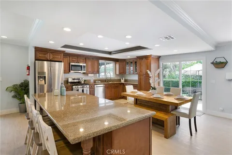 Beautiful Single Story Home with Modern Amenities---MAJOR UPDATES and UPGRADES-Home has been fully repiped with PEX, newer electrical panel, replaced main water line to home, Tesla Solar battery backup wall, Owned solar system, EV charger, luxury vinyl throughout and so much more ! Welcome to this stunning and rare to find single-story ranch style family home that offers luxury and comfort in every corner. This home offers stunning views and privacy all within a 15-minute bike ride to some of California's most beautiful beaches. Ideally located within minutes of the Botanical Preserve, local amphitheater, soccer fields, tennis, YMCA, shops and restaurants make this the perfect location. As you walk in the front door you enter into the light and bright great room showcasing all the upgraded and remodeled living spaces. The open floorplan creates a seamless flow from room to room, making it ideal for entertaining and family gatherings. This home is move-in ready with modern finishes and fixtures that add a touch of elegance. The expansive kitchen includes a big island and state-of-the-art stainless steel appliances, perfect for the home chef. The home boasts four spacious bedrooms and four bathrooms, three of which feature ensuite bathrooms, ensuring the utmost privacy and convenience. With 3 bedrooms on one side and a 4th bedroom with en-suite bath and possible private sitting room could make the 4th bedroom a great in-law suite. Sitting on a large, pool-sized lot, the outdoor space is perfect for relaxation and recreation, complemented by a newly installed patio cover for summer BBQs and outdoor dining. The home is equipped with an owned 9.6 KHW Tesla solar system that includes a battery backup/power wall, ensuring energy efficiency and reliability. Additionally, the entire house has been repiped with PEX. An electric car charger is installed, making it perfect for charging your electric vehicle at home. Boasting an oversized two-car garage, this property is perfect for those who value space and convenience Experience the pinnacle of single-story living in this beautifully appointed home. Don't miss the opportunity to make this property your own! All this and no HOA or Mello Roos