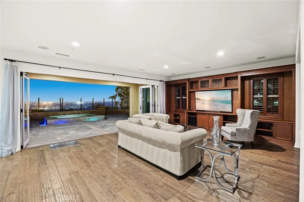 PRICE IMPROVEMENT! This stunning property offers breathtaking panoramic city and mountain views by day and captivating city lights at night. Located in the prestigious Montserrat neighborhood within the Blackstone Community, this 2013-built home has been impeccably maintained and features over $240,000 in upgrades.Spanning 4 bedrooms, 4.5 bathrooms, a loft, and a 3-car garage, this home is designed for luxurious comfort and functionality. Upon entering, you'll be greeted by engineered wood floors, recessed lighting, and custom plantation shutters throughout. The Great Room boasts a custom-built entertainment center with surround sound and impressive views, while expansive glass sliding doors provide seamless indoor-outdoor living. The spacious gourmet kitchen is a chef's dream, complete with Hazelnut cabinets, granite countertops, stainless steel appliances, a large center island, and a walk-in pantry. The main floor features a private in-law suite, perfect for guests or multi-generational living. Upstairs, a versatile loft area offers additional space for entertaining or relaxation. The master suite is a true retreat, featuring a walk-in closet with built-in storage and a luxurious en-suite bathroom. Each additional bedroom also includes its own private en-suite for ultimate convenience. Step outside to a beautifully landscaped backyard with a Jacuzzi that overlooks the city skyline, providing an unobstructed view of Disneyland's fireworks and twinkling evening lights. This quiet, safe neighborhood includes security patrol and is situated within the highly acclaimed Brea Olinda Unified School District. The Blackstone Community offers resort-style amenities, including a junior Olympic pool, children's playground, BBQ area, and dog parks. With easy access to the 57/90/91 freeways and proximity to Brea's hillsides for hiking and outdoor activities, this home offers the perfect blend of luxury, comfort, and convenience. Don't miss this incredible opportunity to own a truly exceptional home!