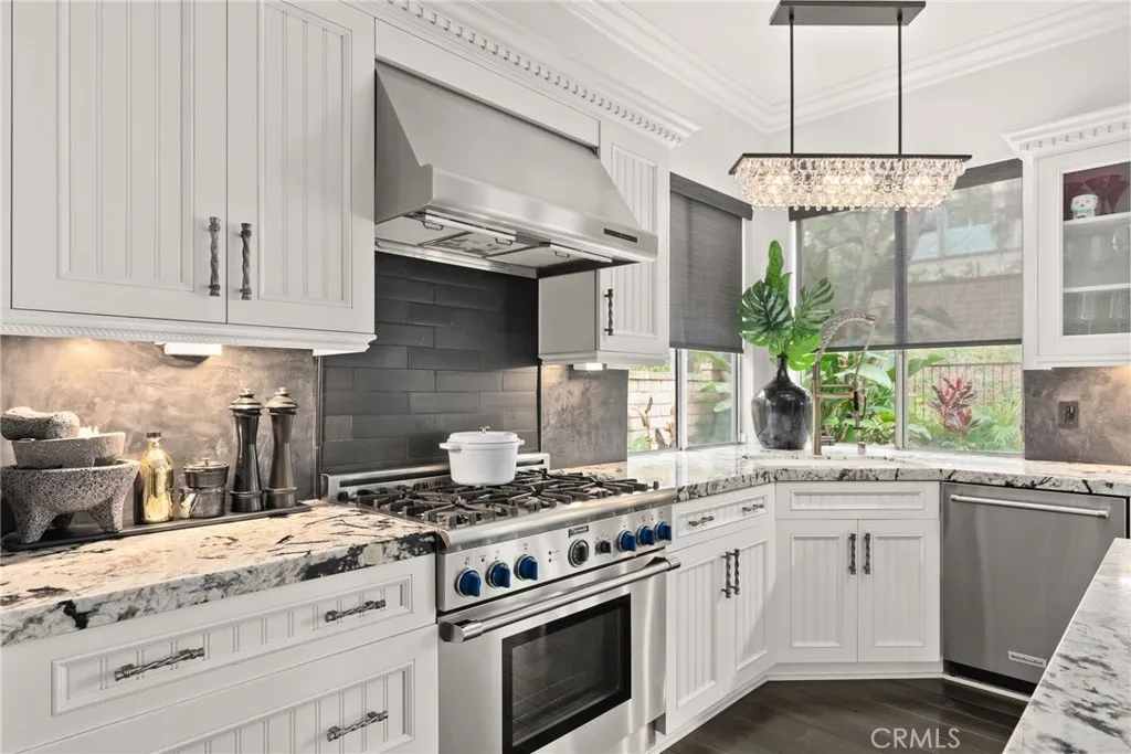Discover your dream home in Pacific Hills, tucked away on a serene L-shaped street ending in a quiet cul-de-sac. This beautifully upgraded property combines luxury with thoughtful details that enhance both style and function. Enter through a custom stone pathway, and be welcomed by a bright, open interior with wood flooring throughout the main level. The dining room showcases lighted wine racks, and a stunning two-sided fireplace seamlessly connects the living spaces, complemented by a custom entertainment center and integrated surround sound. The chef s kitchen features top-of-the-line appliances, including a 36 Thermador gas range, a 48 Kitchenaid refrigerator, and an elegant Venetian plaster backsplash. Step through French doors into a private backyard oasis designed for relaxation and entertainment, complete with a three-hole putting green, a lighted, covered custom stone patio with a built-in gas modern fire table, tropical landscaping, plus avocado and lime trees. This home s additional upgrades include smart tech throughout, such as a Ring alarm system, app-controlled thermostat, and remote garage and front door access, plus practical touches like lighted vanity mirrors, a whole-house fan, and garage storage. Of course the home also enjoys all the benefits of membership at the beautiful Lake Mission Viejo. Experience refined comfort, functionality, and tranquility in this meticulously crafted Pacific Heights gem.