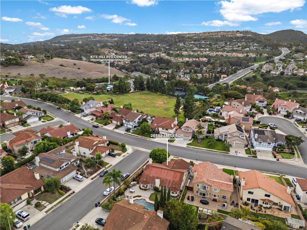 The home you've been waiting for! Located in the desirable Kite Hill neighborhood of Laguna Niguel, this rare single level home is on an expansive corner lot. Curb appeal abounds with pristine landscaping and brick accents. The stunning and private entertainers backyard features a large salt water pool and spa with a custom water feature, a built-in BBQ island and a gas fire pit with a stone facade. The open concept layout is sure to please with high ceilings, elegant limestone flooring, recessed lighting and natural light enhanced by the french doors and bay windows. The spacious living room boasts a large fireplace accented with beautiful stone and a wood mantle and seamlessly flows to a casual dining area with built-ins for your convenience. The large kitchen which is a chef's delight is beautifully upgraded with ample custom cabinetry, stainless appliances and has a lovely dining nook which overlooks the gorgeous backyard. The huge family room has a second fireplace, an exquisite bar area and french doors leading to your outdoor space. The primary bedroom enjoys a second set of french doors leading to the pool, a large walk-in closet with convenient built-ins and an attractive bathroom with an excellent use of stone, dual sinks and a luxurious soaking bathtub. This home possesses a secondary bedroom and bathroom while bedrooms 3 and 4 are currently conjoined and used as a bedroom and an office. The luxurious aesthetic improvements will be appreciated as will the newer windows, HVAC, tankless water heater and so much more. See what makes 28862 Jaeger Drive so special! A huge bonus is being a resident of Kite Hill with exceptional amenities for a low monthly fee. A Jr. Olympic pool to swim laps in, sport courts (tennis, pickleball, basketball and sand volleyball) a tot lot and more for your enjoyment.