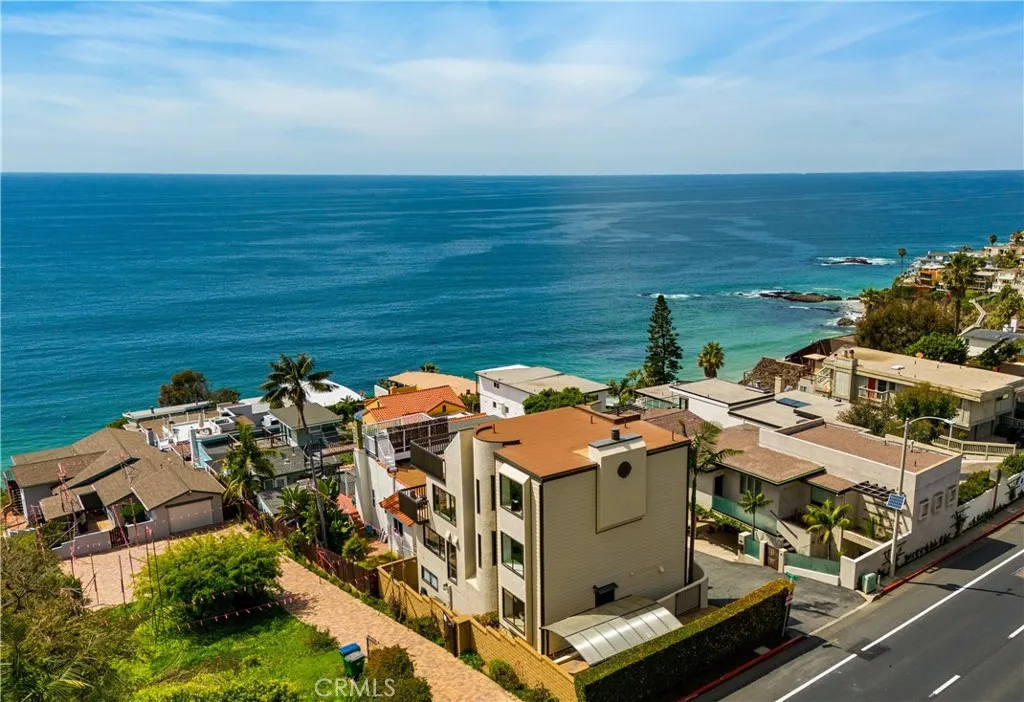 Beachfront living awaits at this modern Laguna Beach home, where dramatic ocean, beach, coastline, Catalina Island and whitewater views are experienced from every story of this three-level design. Enjoy private access to the sands of Thousand Steps Beach as well as a setting near the restaurants, shops and galleries of South Laguna. Open and filled with natural light, the floorpan reinterprets sophisticated elegance with a warm, white color theme, light wide-plank flooring, cozy view-oriented window seats, classic crown molding, a dramatic multi-tiered curving staircase, and custom lighting fixtures. Beyond a gated entry patio, the light and airy home features a main level that is primed for entertaining with a family room and formal dining room that flow easily to the kitchen. Stone countertops and a full glass-tile backsplash harmonize with custom white cabinetry, a walk-in pantry, open shelving, peninsula bar, and appliances including a double oven, warming drawer and five-burner cooktop. One bedroom and bath are also located on this floor. Upstairs, two secondary bedrooms join a lux primary suite with sweeping ocean and coastline views, a covered view balcony, sitting area, walk-in closet with built-ins, a soaking tub, separate shower and two sinks. The third level showcases a large living room and an even more impressive view deck. A custom fireplace with raised hearth, a wet bar and a built-in media center distinguish the living room, while the expansive deck captures views of gorgeous sunsets, crashing waves and passing sailboats. An attached two-car garage features extra space for storage, and the side yard hosts a gated carport for two vehicles.
