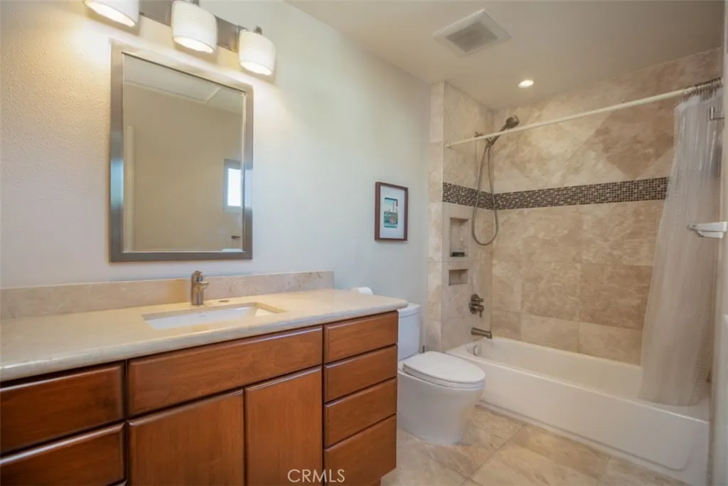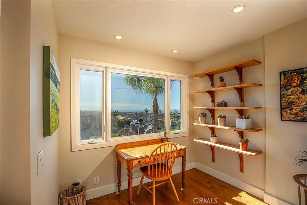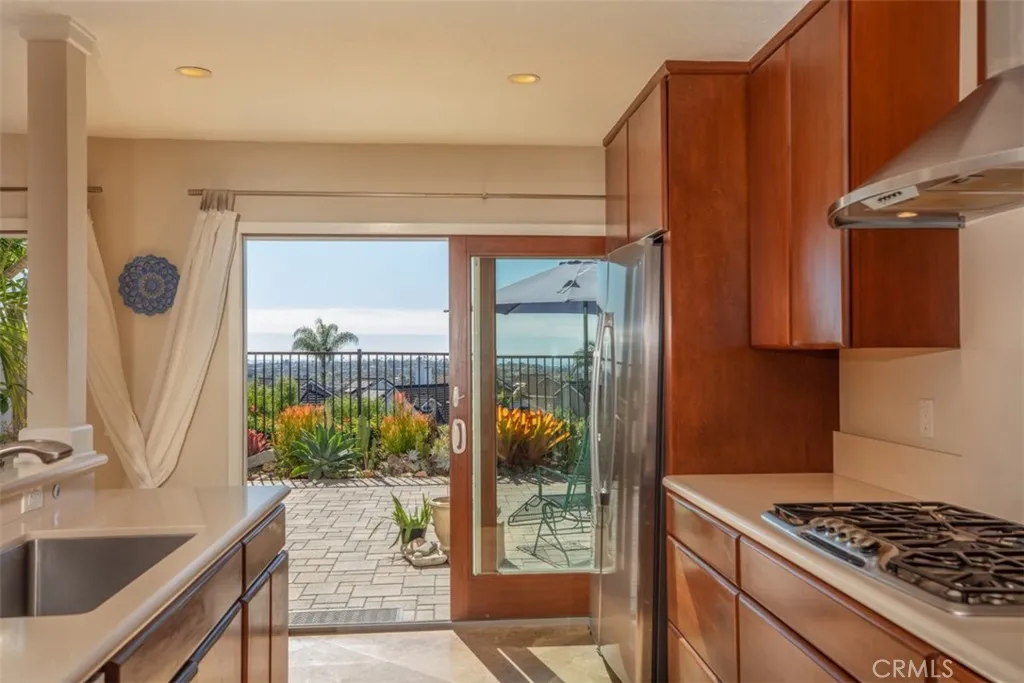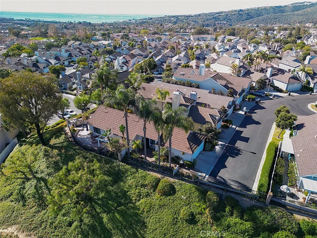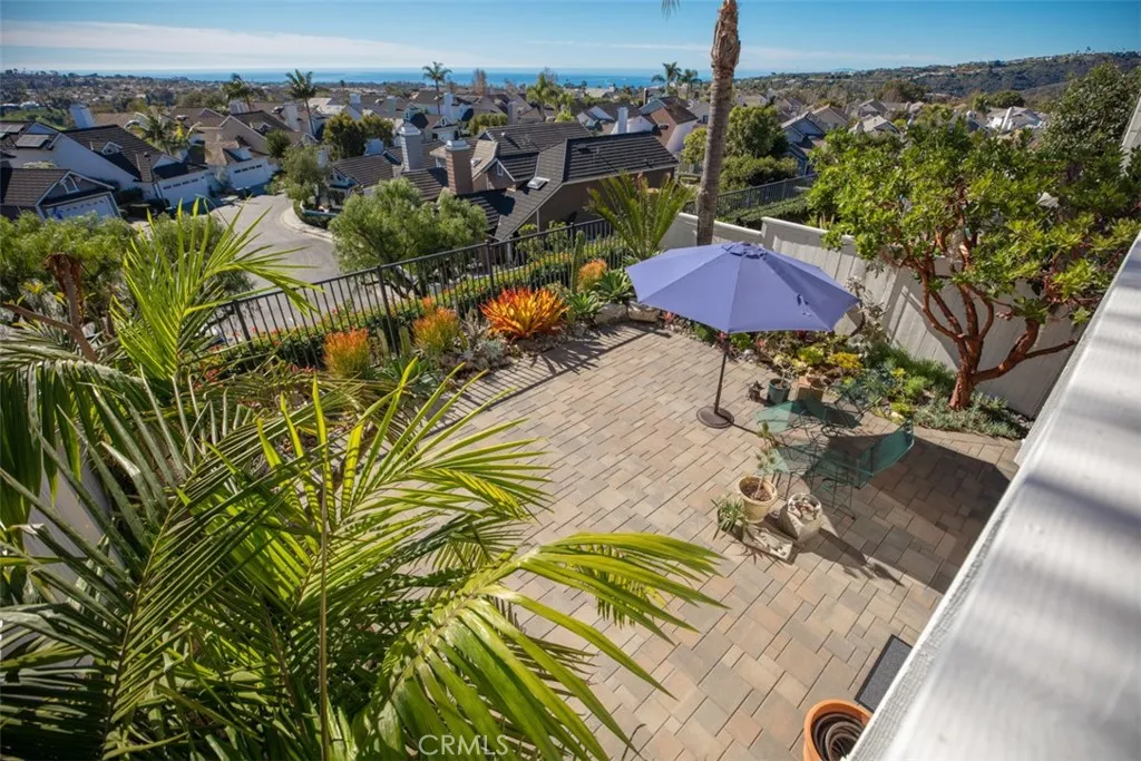 YOUR COASTAL HOME AWAITS. NESTLED IN LAGUNA NIGUEL IN THE PRESTIGIOUS BEACON HILL VILLAGE COMMUNITY this beautiful single family home spans 1,733 square feet on a 3500 sq ft lot with a two-car garage, two bedrooms, office and two-and one-half baths on a quiet cul-de-sac street. Panoramic blue water ocean views and gorgeous sunsets from the kitchen, family room, primary bedroom and backyard as the home sits less than 2 miles from the beach. The kitchen has maple cabinetry, sile-stone countertops, GE Profile refrigerator, Bosch Dishwasher, Thermador cooktop and GE Convection oven, vented hood over the burners and trash compactor. A large island with sitting space, pendant lighting as well as inside laundry area off the kitchen. The primary bedroom has high ceilings, ceiling fan, an upgraded ensuite bathroom with heated floors, walk in closet, ocean view balcony and a connected office space. The second bedroom also has an ensuite bathroom and plenty of storage space and Quartz countertops in both bathrooms. The flooring downstairs is travertine stone and wood flooring throughout the upstairs, plus lots of windows, skylight and wood frame doors to the backyard.. Brick and concrete pavers placed in the side and backyard with a manicured array of low maintenance plants, shrubs and trees. The roof is composite and replaced in 2013. Home has been re-piped with PEX and a new tankless water heater. The garage floor was recently epoxied and there is a pull down for storage above. including newer central AC unit. Close proximity to the coast, walking-bike trail to Waldorf Astoria, Monarch Beach Golf Course, Ritz Carlton and Salt Creek Beach, city parks, shopping, restaurants, and award-winning schools. HOA amenities include six lighted tennis courts & three pools & spas, parks and walking paths. VIDEO LINK IS UP... CLICK THE 360 BUTTON UNDER THE MAP ON THE MAIN PAGE FOR A VIRTUAL TOUR