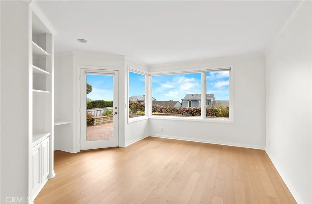 Graced with breathtaking views of the Pacific Ocean, stretching from Catalina Island to Palos Verdes and beyond, this charming home within the prestigious 24-hour guard-gated oceanfront community of Niguel Shores offers luxurious amenities and pristine location. Situated on an exclusive single loaded cul-de-sac street, this rare and expansive three-bedroom, two-and-one-half bath residence features newer hardwood-like flooring and new carpeting throughout. Expansive windows of the main level fill the freshly painted interiors with an abundance of natural light. The gourmet kitchen, replete with granite countertops, opens up to the breakfast area and spacious living room overlooking the ocean. The upstairs level features an oversized primary suite boasting stunning ocean views and spectacular sunsets, while the additional bedrooms offer ample space and comfort. Beyond the property's idyllic surroundings, Niguel Shores offers a wealth of exclusive amenities, including a pool, spa, tennis, basketball courts, pickleball, clubhouse, and blufftop oceanfront park providing direct access to The Strand beach below. Located along the famed California Riviera, this residence offers a serene coastal lifestyle just a few miles from the vibrant Dana Point Harbor and its entertainment, restaurants, and beaches.