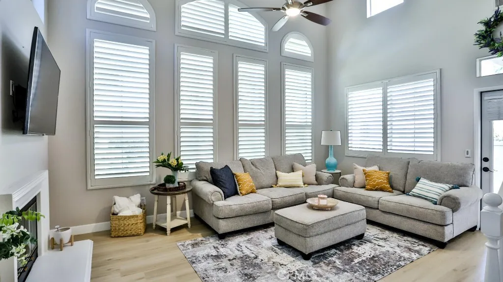 Welcome to this beautifully updated home featuring 3 spacious bedrooms and 3 full bathrooms. The smart layout includes a desirable main-floor bedroom with an adjacent full bath - ideal for guests, multigenerational living, or a private home office. Upstairs, you'll find two additional bedrooms, including a serene primary suite with an upgraded en-suite bath and a modern ceiling fan for year-round comfort. The open-concept living space is highlighted by soaring ceilings in the family room, flowing seamlessly into the kitchen and dining area - perfect for everyday living and effortless entertaining. New luxury vinyl plank flooring with the look of natural wood adds warmth and elegance throughout much of the home. The chef's kitchen features custom natural wood cabinetry, quartz countertops, and durable tile flooring - combining timeless design with practical function. Located in a highly sought-after community, residents enjoy exceptional resort-style HOA amenities, including: A private beach club and lagoon A scenic lake with lakeside amphitheater Multiple swimming pools and beautifully appointed clubhouses Courts for basketball, pickleball, tennis, and volleyball Don't miss this opportunity to own a stylish, move-in-ready home in a vibrant and amenity-rich neighborhood!