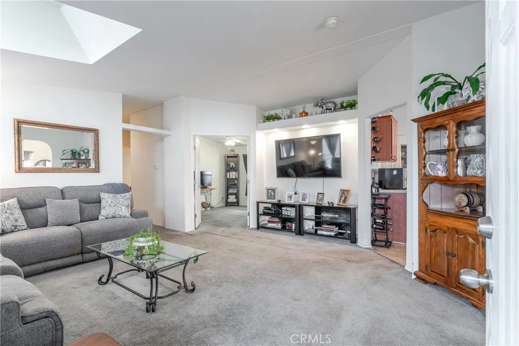 This newer manufactured home, built in 2006, is located in the desirable Daleview Estates 55 years+ senior park. From the front brick-detailed walkway and pebble-stone garden, this handsome manufactured home offers modern comfort and effortless convenience. Step through the welcoming front door to a light and bright living room with a row of windows, vaulted ceiling, decorative half-moon ceiling-level window and an entertainment cubby area with recessed lighting. The inviting formal dining room offers a north-facing bay window and pendant light fixture. The large gourmet kitchen is a chef's delight with extensive cabinet and countertop space, large center island, built-in sideboard, double stainless steel sink at the bay window with mountain views, stainless steel stove and refrigerator, pantry, and a cozy eating area. The home offers a spacious 1,574 square feet of living space, 2 bedrooms, 2 bathrooms, and a den that could be used as a third bedroom. The ensuite primary bedroom is a serene delight, with direct access to a side deck for relaxing in a private space with calming ambient night lighting. The oversized primary bathroom offers a walk-in shower, large storage cabinet, linen closet and dressing area. Other amenities include a well-designed floor plan, separate laundry room with washer and dryer, central air and heat, ceiling fans and recessed lighting. The exterior space includes 2-car carport parking and 2 storage sheds. The park has a community pool and spa, clubhouse, plenty of guest parking, a walking trail with sitting areas among lush gardens, and a covered barbecue area with picnic tables for outside entertaining.