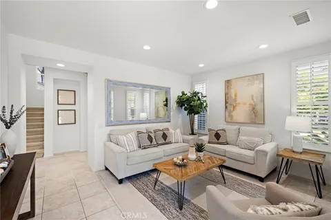 Welcome to 63 Tuberose - a stunning Canopy Lane Plan 4 home located in one of Ladera Ranch's most sought-after enclaves, just steps from Poets Park, Oso Grande Elementary, and Founders Park. This beautiful corner-lot residence offers timeless curb appeal, expansive indoor-outdoor living, and a thoughtfully designed open floorplan filled with natural light. Step inside to soaring high ceilings, tile flooring, and a truly open layout. The spacious kitchen features white cabinetry, a large center island, and a new dishwasher, making it ideal for entertaining. The adjacent great room and dining area flow seamlessly, while plantation shutters and updated LED recessed lighting add warmth and elegance. A full bedroom and full bathroom on the main level is perfect for guests or multi-generational living. Upstairs you'll find a generous loft - ideal for a media room, office, or playroom - that overlooks the open space below, enhancing the airy feel of the home. The primary suite is a true retreat, complete with a sitting area, large walk-in closet, soaking tub, separate shower, and dual vanities. Two additional bedrooms, a full bath, and an upstairs laundry room complete the second floor. Enjoy privacy and tranquility in your large yard, finished with updated hardscape, rock features, and newer landscaping. Relax while overlooking Poets Park or entertain with ease on this expansive lot. The 3-car garage with epoxy flooring, extended driveway, newer water heater, and other thoughtful updates complete the package. Ladera Ranch is renowned for its resort-style amenities including a remodeled water park, hiking and biking trails, clubhouses, pools, and top-rated schools. Don't miss your opportunity to live in one of South Orange County's most vibrant and connected communities.