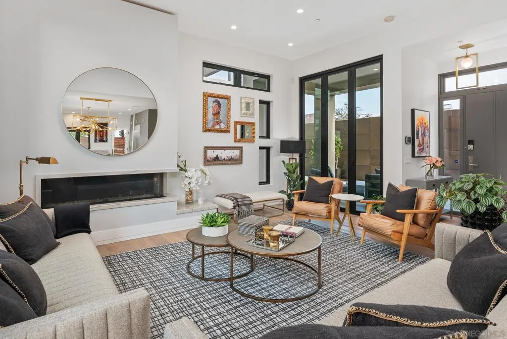 This beautiful home is ideally located in the heart of the Village, just a short walk from La Jolla High School, vibrant shops, diverse restaurants, and the stunning beaches. Enjoy breathtaking ocean views from both the rooftop deck and the master bedroom, perfect for soaking in the coastal ambiance. The thoughtfully designed floor plan includes a master bedroom and two additional bedrooms on the top floor, with a spacious family room and a fourth bedroom located on the lower level. An added bonus is the in-law unit above the garage, featuring its own full bathroom, kitchenette, AC, and separate entrance, providing versatile living options. Inside, the home boasts luxurious European Naturally Aged Wire-Brushed Oak flooring throughout. The chef's kitchen is equipped with high-end Thermador appliances and elegant Quartzite countertops. The bathrooms are outfitted with polished marble finishes and double vanity sinks for convenience. The master suite offers a generous walk-in closet and meticulous design details that enhance both comfort and style. Modern amenities include pre-wired CAT 6, surround sound speakers, and a 220-volt outlet on the patio for commercial-grade space heaters. Every detail of this property has been carefully crafted to blend sophistication with practicality, making it a truly remarkable place to call home.