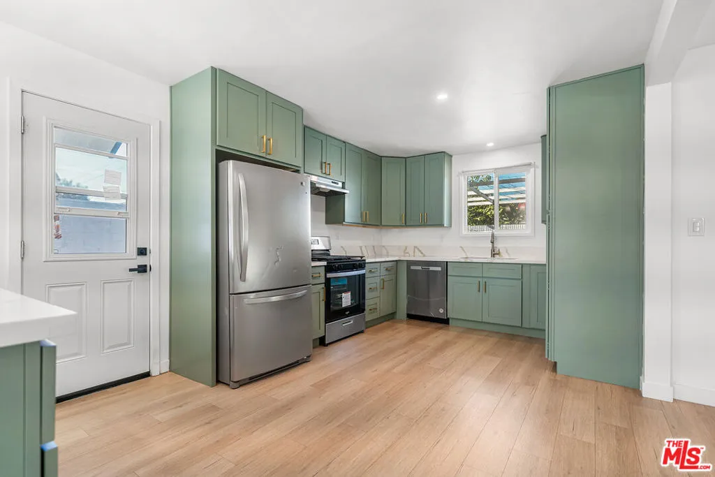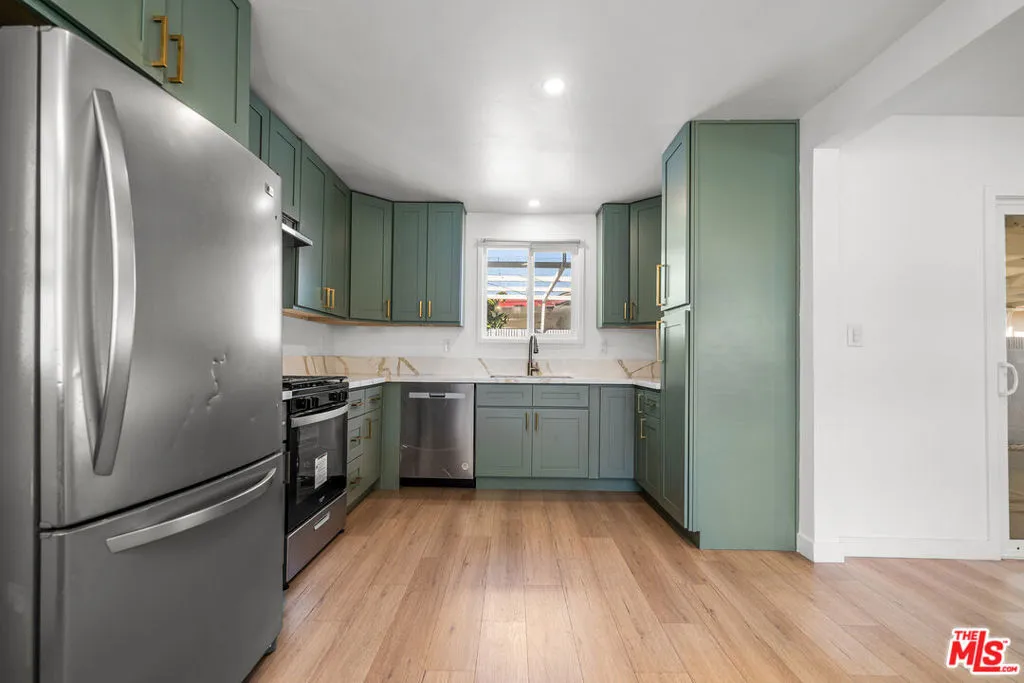 Situated in a desirable Fullerton neighborhood, this upgraded 4-bedroom, 2-bath home offers approximately 1,400 sq ft of living space on a spacious 6,200 sq ft lot perfect for entertaining and pets. Recently renovated inside and out, the open-concept layout features smart-home upgrades and a stylish kitchen with stainless steel appliances and wood cabinetry accented with gold finishes. Two adjoining living areas provide flexible and comfortable living space. The property also includes a large two-car garage with room for storage, hobbies, and laundry, plus a covered patio with a mounted flat-screen TV for outdoor enjoyment. Major improvements include a newer roof (approx. 6 years old) and an upgraded electrical panel completed about two years ago. Conveniently located near Disneyland, shopping, dining, schools, and major freeways, this move-in-ready home is a great opportunity to enjoy all that Fullerton has to offer.