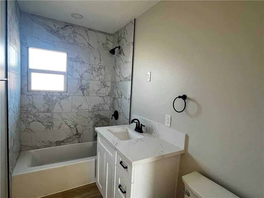 Beautifully remodeled 3 bedroom, 1 bath home on a quiet street of well-kept homes in Compton. The remodel has just been finished and features new paint inside and out, new dual-pane windows, recessed lighting, new flooring throughout. The bright and cheerful, remodeled kitchen has new cabinets, quartz countertops, new stove/oven, dishwasher, and floors. The bathroom also has new fixtures with quartz sink and new bath/shower with tile. Two of the bedrooms have mirrored doors and all three have ceiling fans. There is also a ceiling fan in the dining area. The laundry room also has new cabinets.