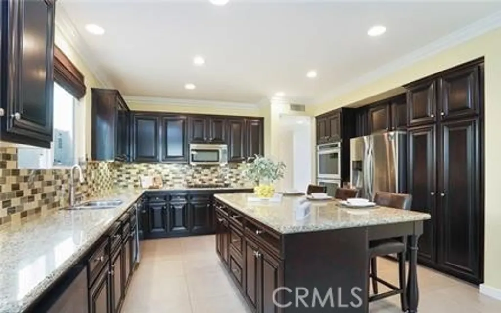 Beautiful upgraded home located in the prestigious guard gated community of Dove Canyon. The 4-bedroom, 3 bath home with one bedroom and bath downstairs is ideal for a growing family. The remodeled large kitchen with the large center island and breakfast bar is great for family gatherings. This kitchen boasts with ample cabinet space, stainless steel appliances plus a wine cooler. It opens to a great family room with a fireplace which is currently used as an additional eating area. The large master bedroom is located on the second level and the master bath has been recently upgraded. It also includes a large walk in closet with organizers. The secondary bedrooms are well sized and share a bathroom upstairs. Contemporary flooring downstairs and crown moldings throughout the home are added bonus. Walking distance to the playground, basketball court and all the hiking and biking trails. You can also take advantage of the resort like Dove Canyon amenities including a Jr. Olympic size pool, 4 lighted tennis courts and the country club. Located in the award-winning Capistrano Unified School District plus plenty of excellent private schools. Don't miss the opportunity to see this beautiful home.