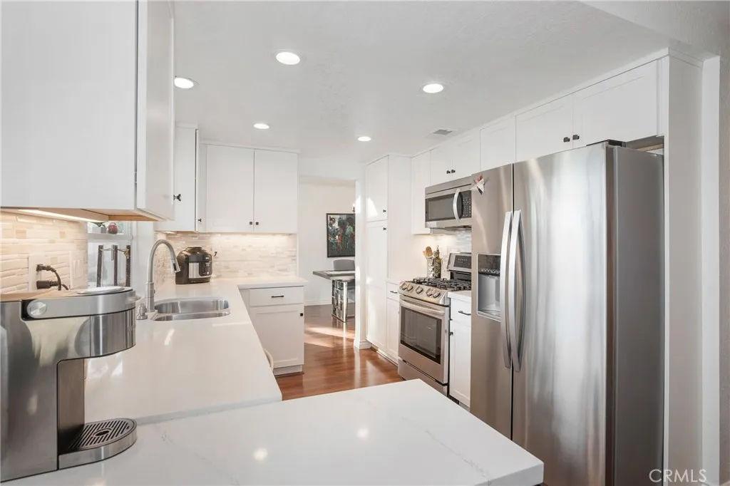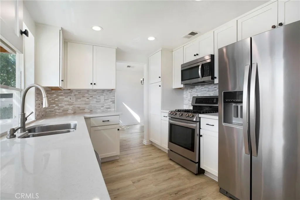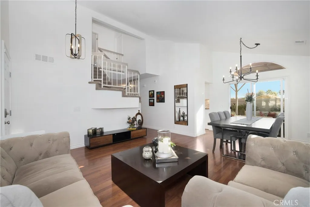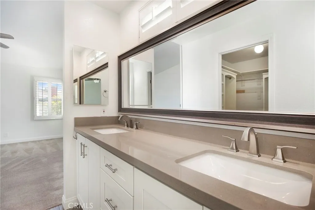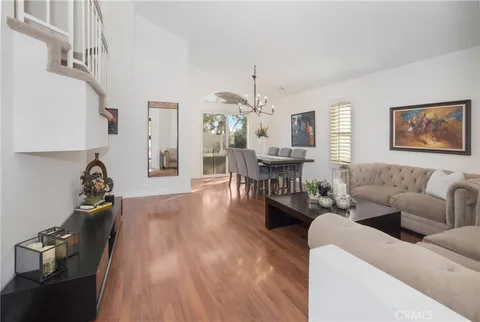 A beautiful 4-bedroom, 2.5-bathroom home with a spacious loft and two-car garage offering plenty of extra storage. The private backyard is perfect for entertaining, with some sunset views over the neighbors below. Nestled on a quiet cul-de-sac, this home is centrally located in Rancho Santa Margarita. Inside, you'll find a stunning kitchen and bathrooms, brand-new Vinyl flooring downstairs, and clean, like-new carpet upstairs. Plantation shutters throughout, double pane windows, ceiling fans in every bedroom, and fresh interior paint colors give the home a modern, inviting feel. The open floor plan includes a large living room with fireplace and cathedral ceilings, a family room off the kitchen, and a convenient half bath on the main level. This ideal location offers easy access to Lake RSM, shopping, restaurants, and more. Enjoy all the amenities Rancho Santa Margarita has to offer, including the lake, pools, and parks.