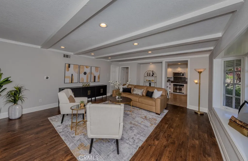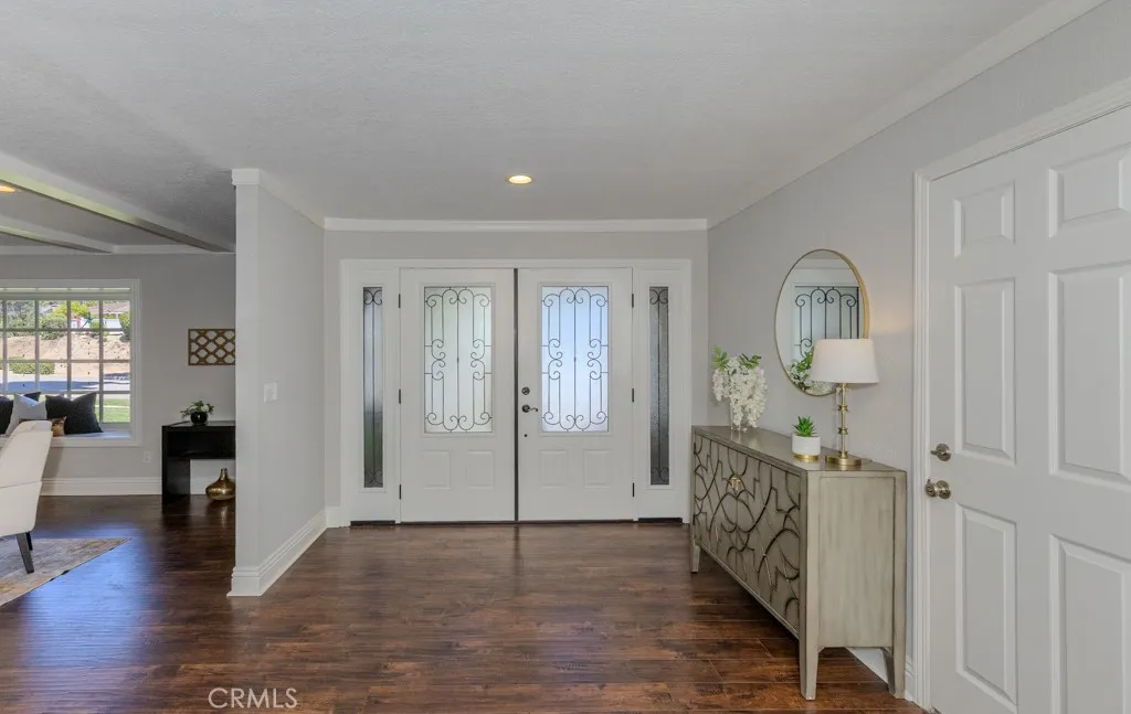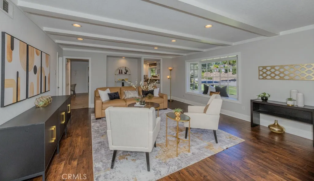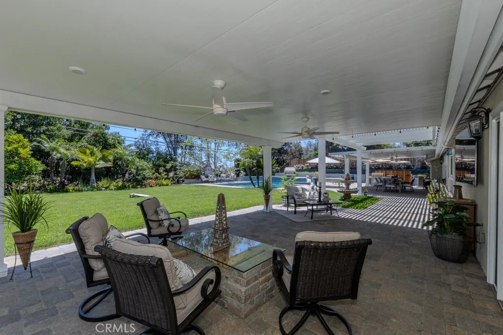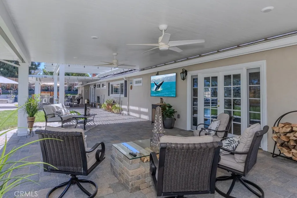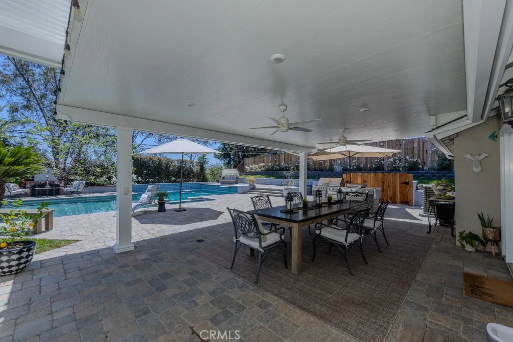 Welcome to 1448 W Domingo Rd in Fullerton, a beautifully upgraded single-story home in the highly desirable Sunny Hills neighborhood. This home sits on a private lot just under half an acre, offering space, comfort, and incredible outdoor living. From the moment you arrive, you're welcomed by paver walkways, a double-door entry, and charming stacked stone accents. Inside is a foyer that opens to a spacious living room with a large bay window providing great natural lighting, wood flooring, and recessed lighting. The kitchen is tastefully updated with granite counters, an island, stainless steel appliances, upgraded cabinetry, recessed lights, a bay window, and a pantry. The dining area has a ceiling fan and French doors with operable side panels opening to the backyard. To the left of the entry, the large family room has a brick fireplace, recessed lighting, and another set of French doors with side windows that open, creating great indoor-outdoor flow. The covered patio is an entertainer's dream. Both ends of the patio feature recessed lights and dual ceiling fans. It's wired for a wall-mounted TV and set up for outdoor entertaining. The stainless steel barbecue can connect to a gas line and sits near the paver-lined entertaining area. The pool and spa include a diving board and multiple waterfalls that flow into the pool. The spacious yard also includes a large grass area and is surrounded by mature trees for enhanced privacy and relaxation. All bedrooms and living spaces have wood flooring, while the kitchen, bathrooms, and dining area feature large tile flooring. The primary bedroom has double-door entry, a walk-in closet, plantation shutters, and a ceiling fan. The remodeled bathroom features granite counters, custom cabinetry, recessed lights, and a walk-in tiled shower. The guest bathroom has dual sinks, custom cabinetry, and a tiled shower combo. Not included in the square footage is an upstairs bonus area with an office nook and open media space. The finished two-car garage has direct access and epoxy flooring. A wide driveway provides room for multiple cars. All windows have been replaced, solar with 33 panels is paid off, the electrical panels have been updated, and the home is in excellent condition. Zoned for some of Fullerton's top-rated schools including Laguna Rd and Sunny Hills, this location is ideal for anyone seeking access to top-tier education. Rare chance to own this beautiful home in one of the best neighborhoods in the city.