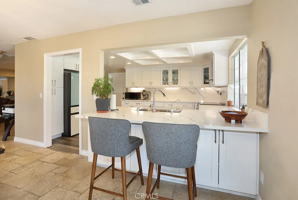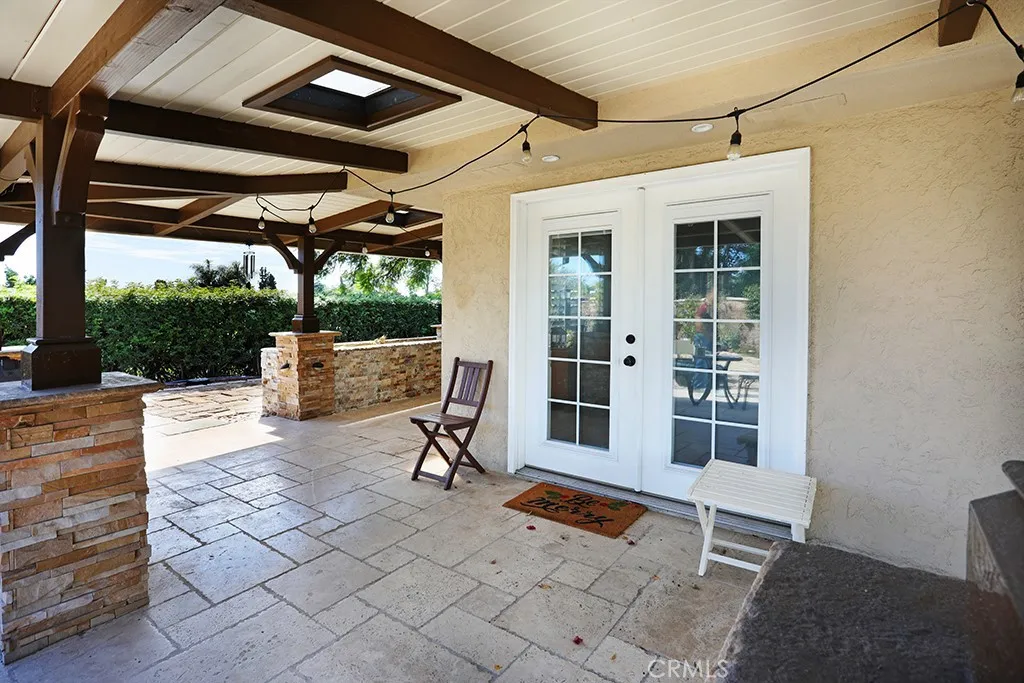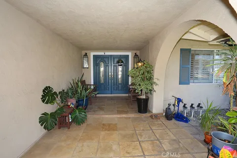 Welcome to one of Fullerton's most desirable neighborhoods! This charming single-level home offers 3 bedrooms, 2 bathrooms, and 1,690 sq. ft. of living space on a spacious .28-acre lot/(12,000 Sq.Ft). Step through the impressive double-door entry into a bright and inviting interior. The dining and living rooms are enhanced with beautifully maintained travertine stone flooring, creating a timeless and elegant feel. The remodeled kitchen features premium granite countertops, perfect for the home chef who loves both style and functionality. Natural light pours in through abundant double-pane windows and French doors, filling the home with warmth. The living room highlights three designer wall niches with accent lighting, while the master suite opens to a private elevated deck overlooking the backyard and includes a custom walk-in closet. The expansive backyard provides endless possibilities for entertaining, relaxing, or creating your dream outdoor retreat. Additional conveniences include custom automatic doors and thoughtful design details throughout. Don't miss the opportunity to make this stunning Fullerton home your own!