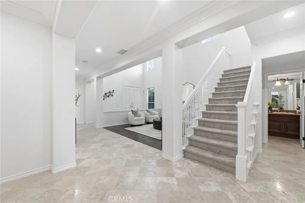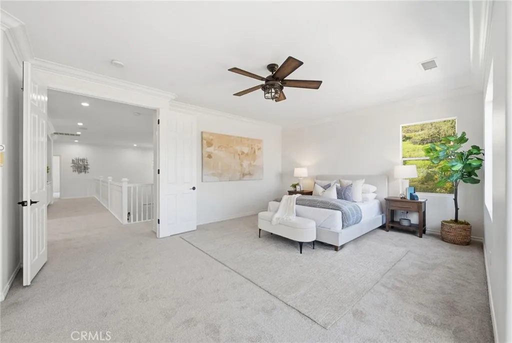 Stunning 5BD/4.5BA pool home at the end of a quiet cul-de-sac on a rare oversized lot with beautiful city lights views. Freshly remodeled kitchen, designed with waterfall-edge quartz countertops, a generous island, high-end appliances, and ample storage - creating an elevated space for both cooking and hosting. A dramatic two-story entry welcomes you into bright, open spaces, leading to a large formal dining room perfect for gatherings and a spacious secondary living room ideal for everyday relaxation or entertaining. The home also features an expansive loft that offers flexible use as a media room, office, or additional lounge. This thoughtfully updated residence combines privacy, functionality, and impressive indoor-outdoor living. Throughout the home, new carpet and fresh interior paint add a clean and modern feel. A downstairs bedroom with a full bathroom provides excellent convenience for guests or multigenerational living options. Upstairs, the secondary bedrooms enjoy access to a front balcony with neighborhood views, while the luxurious primary suite features its own private deck overlooking sparkling city lights. The outdoor spaces are equally impressive, highlighted by a Pebble Tec pool and a spacious backyard that offers endless potential for entertaining, relaxing, or customizing your dream outdoor retreat. This rare combination of a premium location, large lot, multiple outdoor living areas, updated interior finishes, and expansive views makes this one of Aliso Viejo's most desirable offerings. Let this home be your perfect blend of comfort, style, and Southern California living.