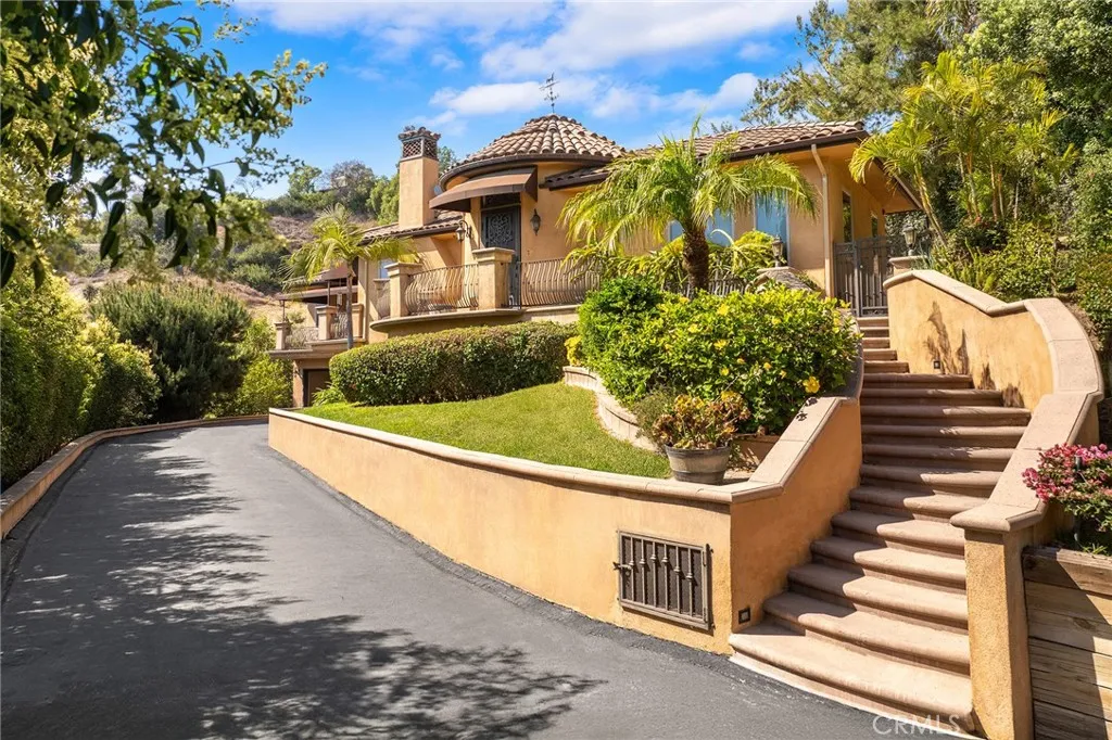 Welcome to this stunning Mediterranean style estate nestled in the serene hills of La Habra Heights. Crafted in 2008, this architectural masterpiece boasts a level of luxury that is simply unparalleled. As you enter through the private gate, you'll be greeted by a beautifully landscaped driveway adorned with an abundance of trees, setting a tranquil ambiance. Step inside and be captivated by the breathtaking interior, featuring soaring high ceilings, exquisite crown moldings, and rich classic hardwood floors that flow seamlessly throughout the house. Every detail has been carefully considered, creating an atmosphere of refined elegance. The master bedroom is a true retreat, offering an expansive space, an enormous closet, and a luxurious bathroom, providing the perfect sanctuary for relaxation. Designed with an open floor plan, this home allows for seamless flow and effortless entertaining. The stunning balconies offer picturesque views of the surrounding canyon, mountains, and the city below, allowing you to immerse yourself in the natural beauty that surrounds you. The allure of this property continues outside, as magnificent double French doors lead to romantic patios and a spacious backyard, perfect for enjoying the outdoors in style. The meticulously manicured grounds provide a private oasis for outdoor gatherings and leisurely strolls. Additionally, this property offers the unique opportunity for monthly royalties income. Despite its secluded landscape, this home's prime location ensures that you remain conveniently close to the city, striking the perfect balance between privacy and accessibility. Prepare to have your expectations exceeded and experience the joy of coming home to a place that truly embodies luxury and tranquility. Indulge in the ultimate living experience and make this extraordinary estate your own.
