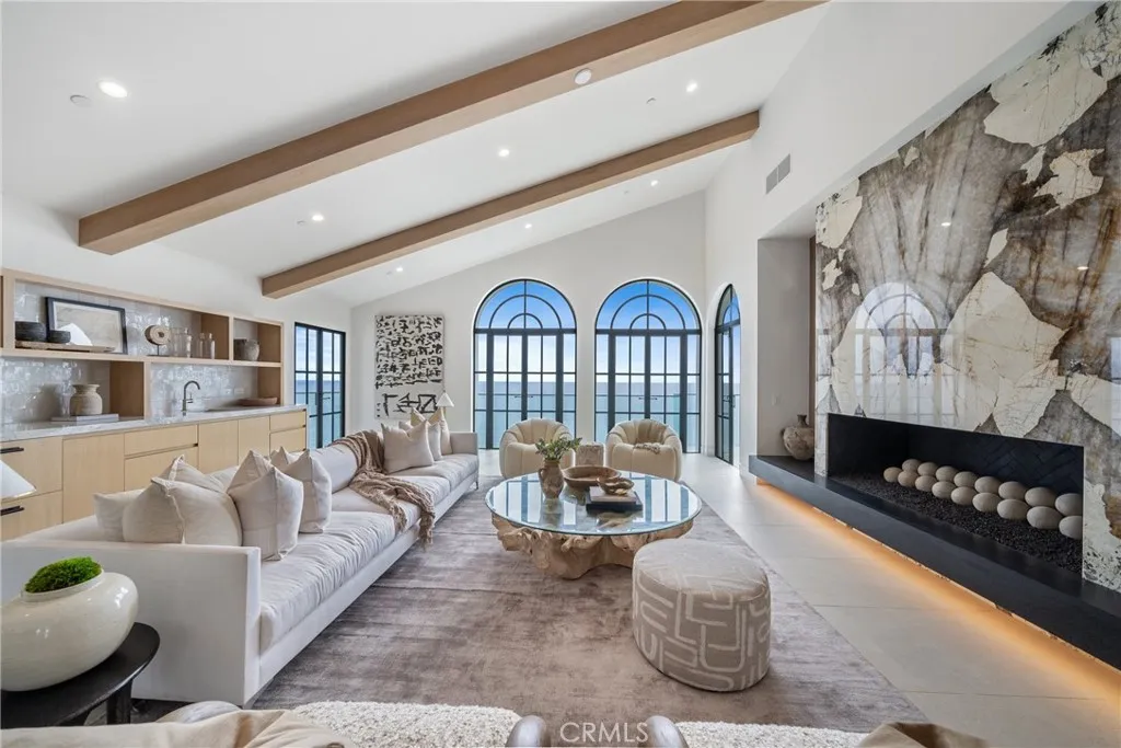 LARGE PRICE REDUCTION! Perched majestically on a half-acre oceanfront bluff overlooking the beautiful Southern California coastline, 32101 Coast Hwy embodies the epitome of luxury Laguna Beach living. This stunning estate features panoramic white water, ocean, Catalina Island, sand, and coastline views. A one-of-a-kind home, it has been completely remodeled to the highest quality. A large bluff-top infinity pool with spa and pool house boast panoramic vistas: an architectural rarity that would never be approved if submitted today. This home was transformed into a contemporary Santa Barbara-style masterpiece by renowned architect James Conrad. Upon entry, the sprawling main level open floor plan immediately captivates with stunning panoramic ocean views. The main level features a spacious living room, dining room, gourmet chef's kitchen, powder room, luxurious primary suite, and magnificent outdoor decks all designed to maximize natural light and ocean vistas. The seamless flow extends to the lower level, where a large family room opens onto the expansive deck overlooking the pool, spa, and ocean. The lower level features three bedrooms, three bathrooms with immaculate tile work, spacious laundry room, and direct access to the pool deck, seamlessly blending indoor and outdoor living. Additional interior touches include incredible custom tile flooring, with ceilings featuring white oak beams and tongue & groove design. Moving outside, lush landscaping and a fully remodeled pool, spa, and waterfall delight the senses. Additionally, the pool house features a beautiful bathroom and bar. New roofing strategically integrates solar panels into the shingles. Three new sets of pocket doors and exterior steel doors with marine-grade finish, plus a brand-new Euroline steel front entry door complete the picturesque appearance. Every detail of this virtually brand-new home has been meticulously curated. The extensive three-year renovation included structural enhancements, updating the plumbing, electrical, & HVAC with state-of-the-art systems, and installation of top-quality windows. For a turnkey experience, the brand new elegant furnishings are available for purchase. 32101 Coast Hwy not only offers a luxurious residence, but a lifestyle characterized by coastal serenity and sophistication. Ideal for those seeking the ultimate in beachfront living, this property invites you to experience the pinnacle of Laguna Beach's coastal charm and beauty.