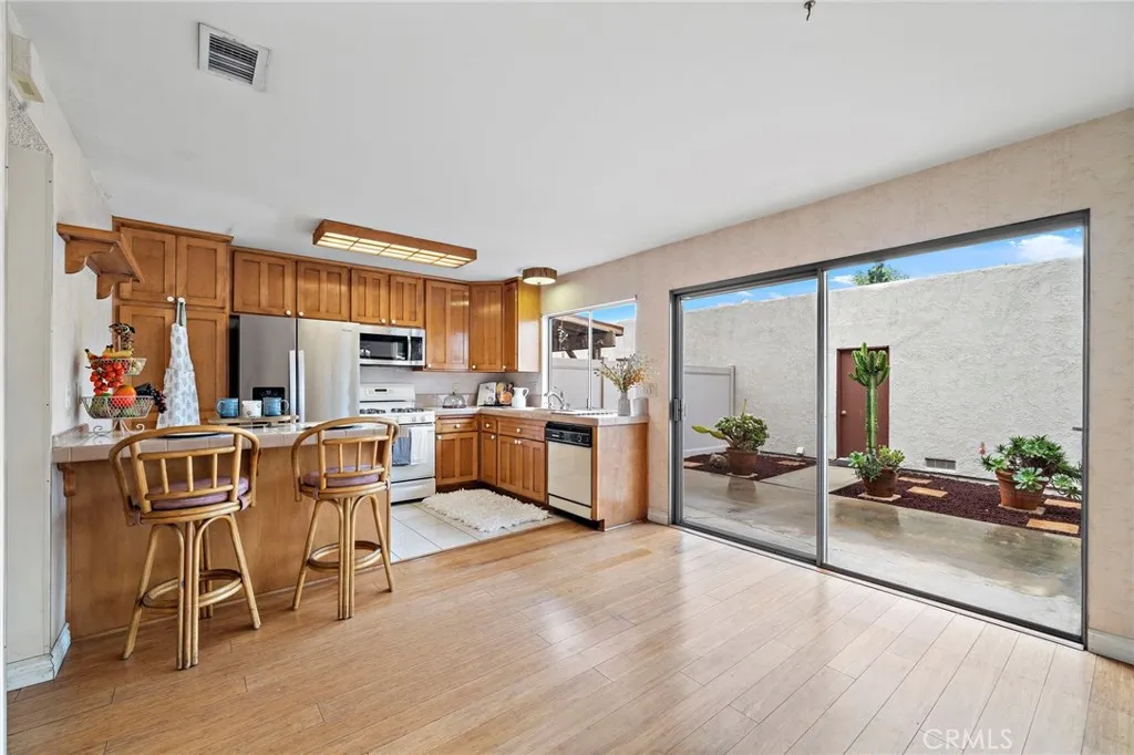 Welcome to 4555 Toledo Way, located in one of Buena Park's most desirable neighborhoods. This inviting two-story condominium offers three bedrooms, two full bathrooms upstairs, and a half bath on the main level. Situated in the sought-after Casitas California community, residents enjoy HOA amenities including a pool, spa, clubhouse, half basketball court, and open grassy areas. The home features a private patio connecting the two-car garage to the dining and kitchen areas, ideal for indoor/outdoor living. You will find true Hardwood flooring throughout the home with tile in kitchen and all three bathrooms. The spacious kitchen was remodeled in prior years with quality wood cabinetry. This home is conveniently located near Knott's Berry Farm, The Source Mall, and within the highly regarded Sunny Hills High School District. A great opportunity for both owner-occupants and investors alike. Family-friendly community with strong rental potential. Original photos and select AI-enhanced images included for design inspiration. This townhome is a Planned Unit Development (PUD) - fee-simple land ownership. Not a condo.