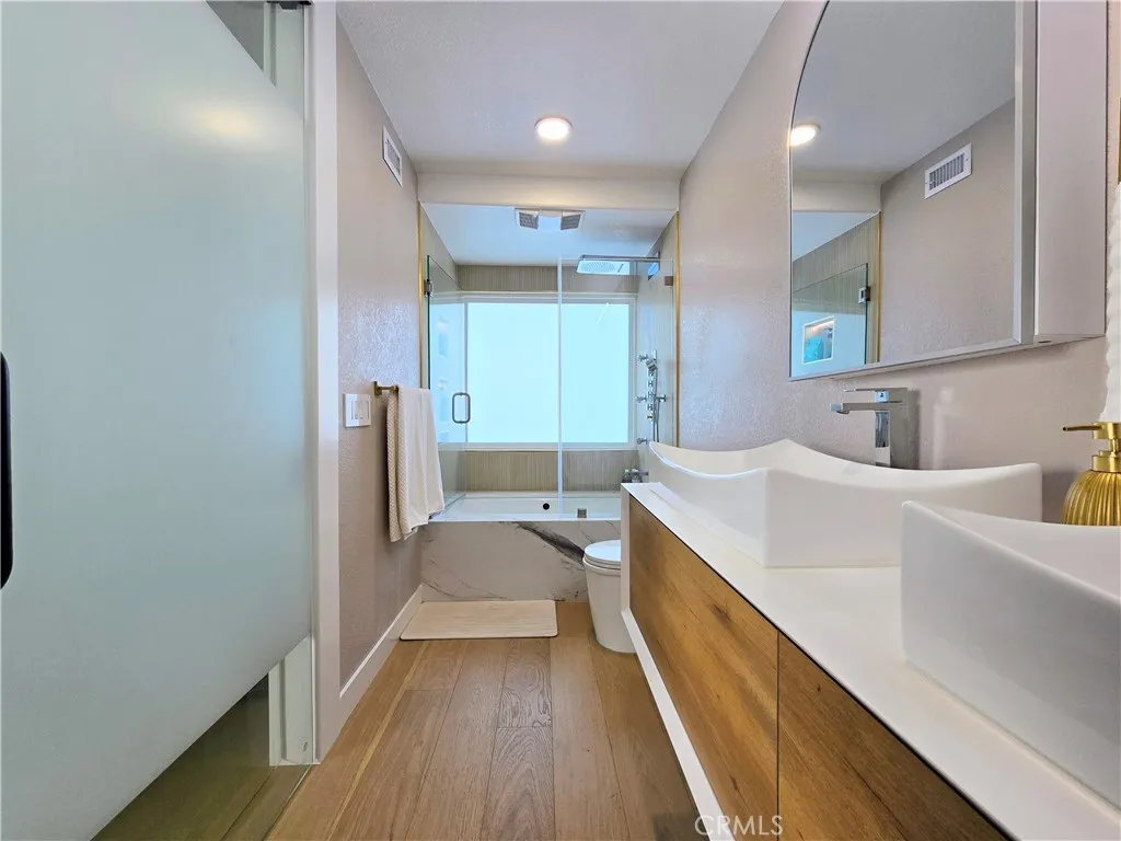 Some homes are updated. This one was reimagined. Set in one of La Palma's most coveted neighborhoods, 5091 Sharon Drive represents a rare opportunity to own a fully transformed residence where nearly $350,000 in luxury upgrades leave nothing left to want. From the moment you arrive, the craftsmanship is unmistakable. The gourmet kitchen is appointed with Jenn Air appliances and custom Koosah Pine cabinetry, designed for those who take cooking seriously. Natural limestone flooring flows throughout the main level, transitioning seamlessly to engineered hardwood upstairs, a combined flooring investment of approximately $40,000. The primary bathroom, finished in honed marble, is pure indulgence. Outside, the home is equally impressive. The rear yard features synthetic turf, a brand new in-ground hot tub with all new equipment, and expansive hardscaping and concrete patios built for entertaining on any scale. New stucco, Dunn-Edwards paint, updated doors and windows, and high-end exterior lighting elevate the curb appeal from the street. Out front, freshly installed Marathon sod completes the picture. Every system in the home has been overhauled to match the quality of the finishes: paid-off solar panels, new HVAC, new electrical, and updated irrigation and drainage. Inside, a redesigned staircase, all new interior and exterior doors, and spa-caliber bathrooms throughout speak to the level of care put into every decision. A nature trail just behind the property offers a quiet escape, while top-rated schools, parks, and convenient access to shopping, dining, and major freeways keep daily life effortless. For the buyer who refuses to compromise, this is the one.