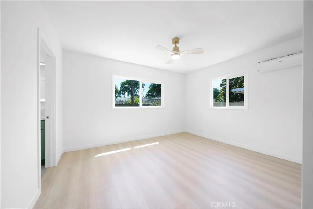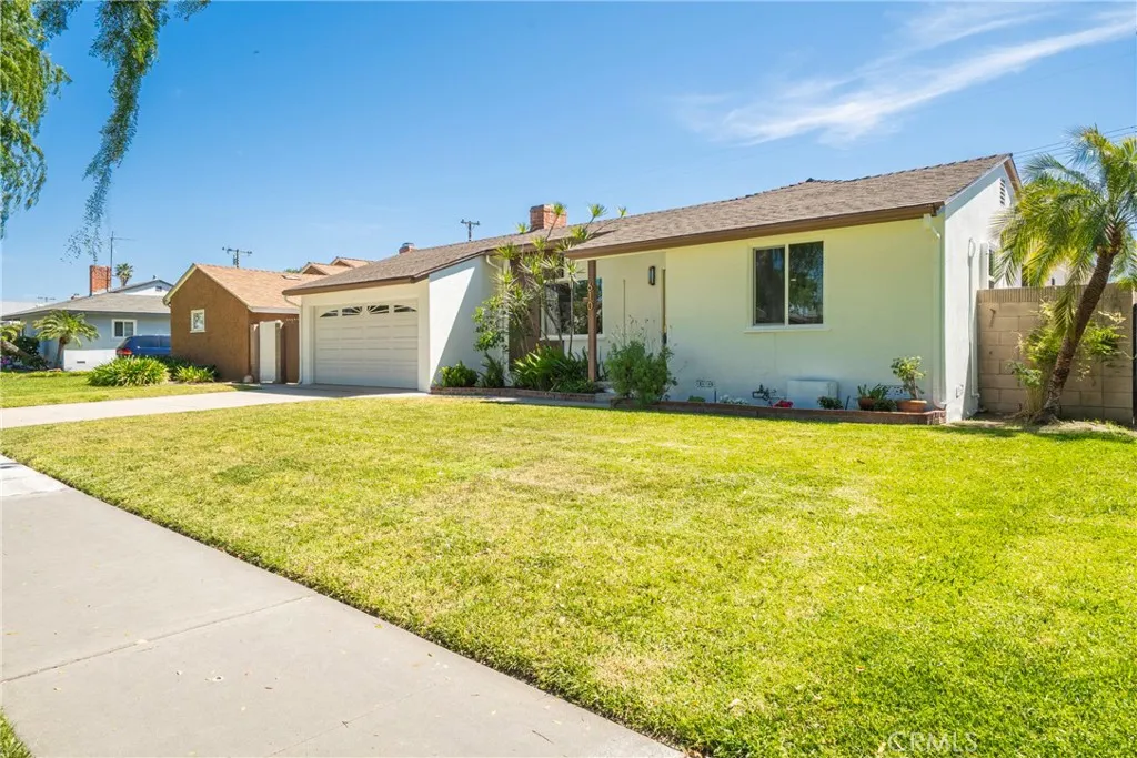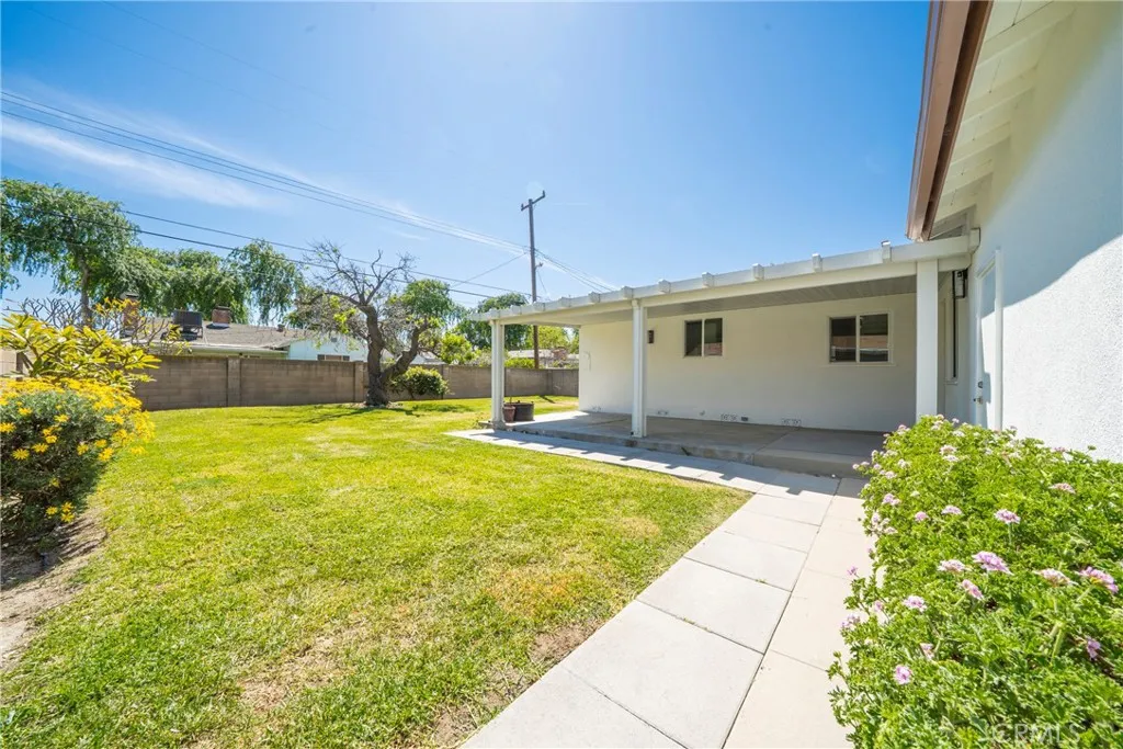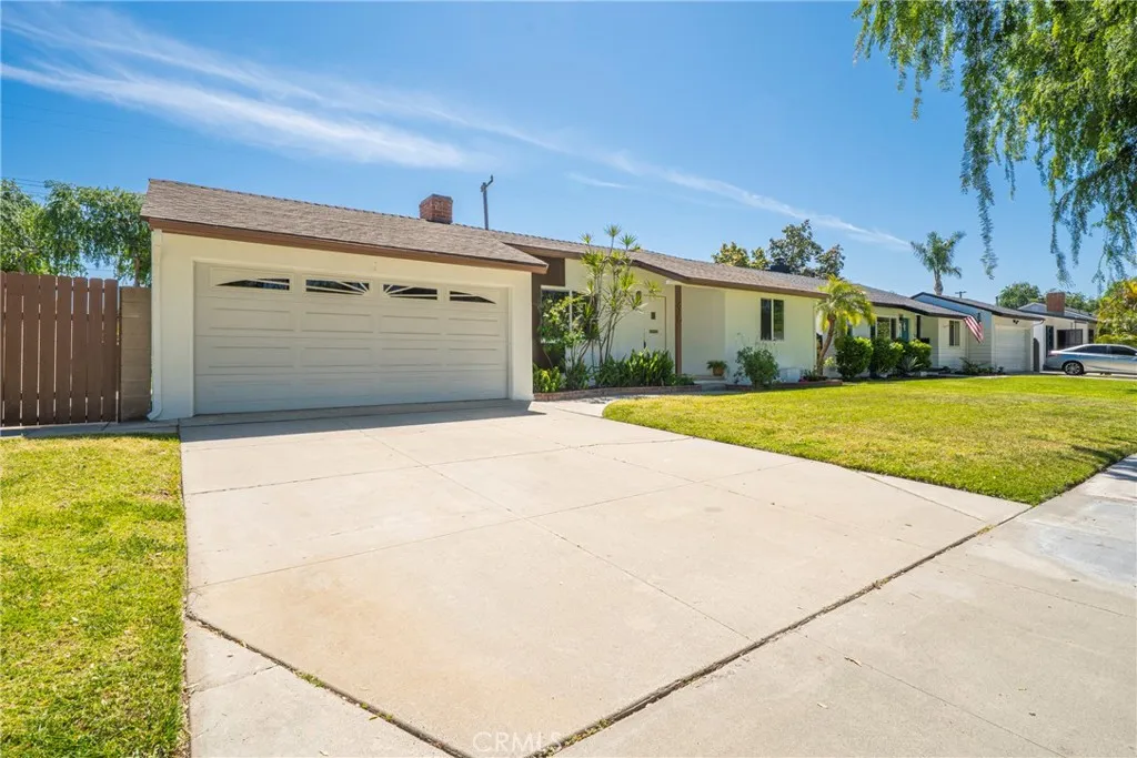 Welcome to this beautifully remodeled, turn-key home featuring 3 spacious bedrooms, 2 stylishly updated bathrooms, and a 2-car attached garage. Step inside to a bright, open layout with brand-new flooring throughout, all-new dual pane windows, and fresh interior and exterior paint. The kitchen is completely redesigned with sleek quartz countertops, trendy cabinetry, and modern fixtures perfect for both everyday living and entertaining. The primary suite now includes a newly added en-suite bathroom, and both bathrooms have been fully renovated with a contemporary touch. Enjoy the enclosed patio and spacious backyard, ideal for relaxing or hosting guests. The backyard also offers great potential for future expansion or additional structures. This home also features recessed lighting, updated light fixtures, ceiling fans, and a stylish accent wall to bring in character and warmth. Perfectly located near major shopping centers, freeways, and schools, this move-in ready home is just waiting for you to make it yours.